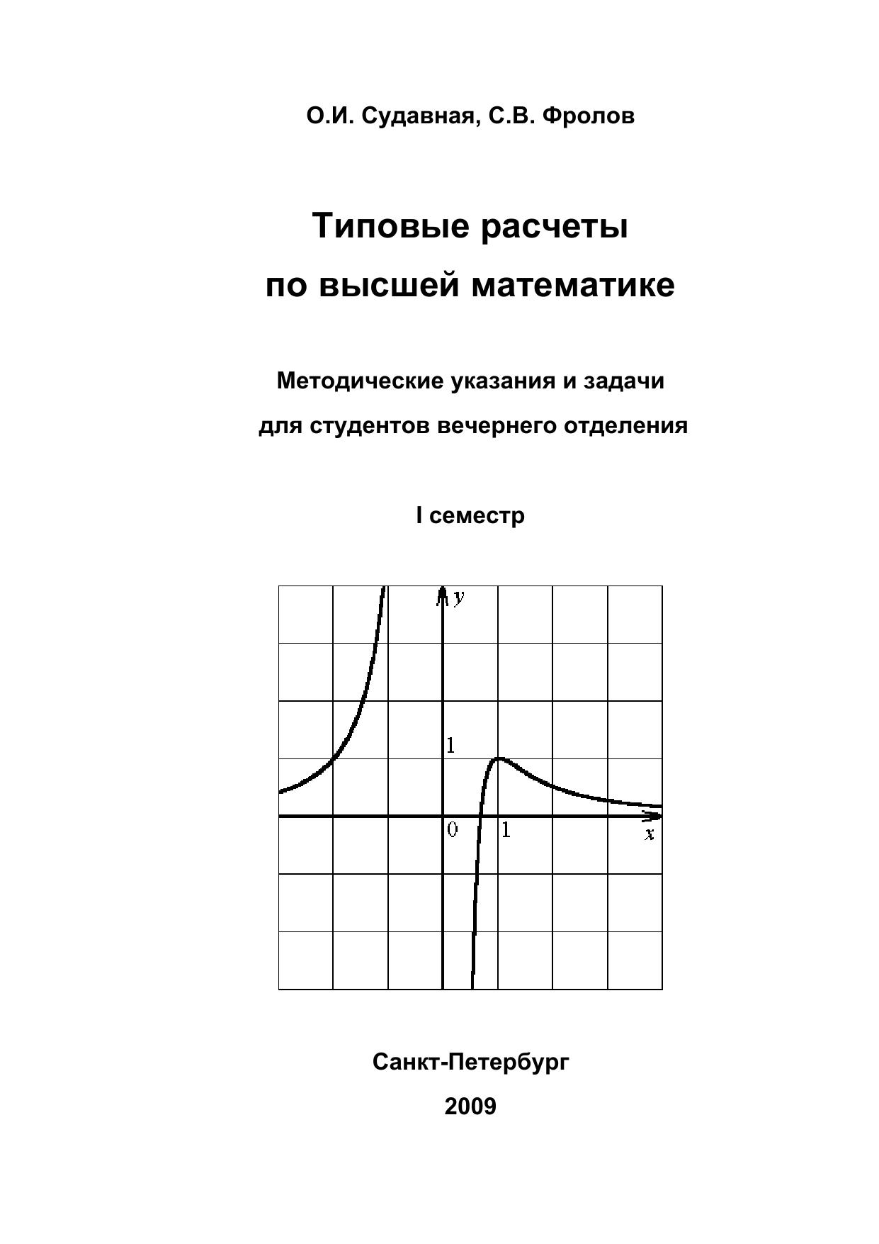 Типовые расчеты по высшей математике. Методические указания и задачи для студентов вечернего отделения. I семестр