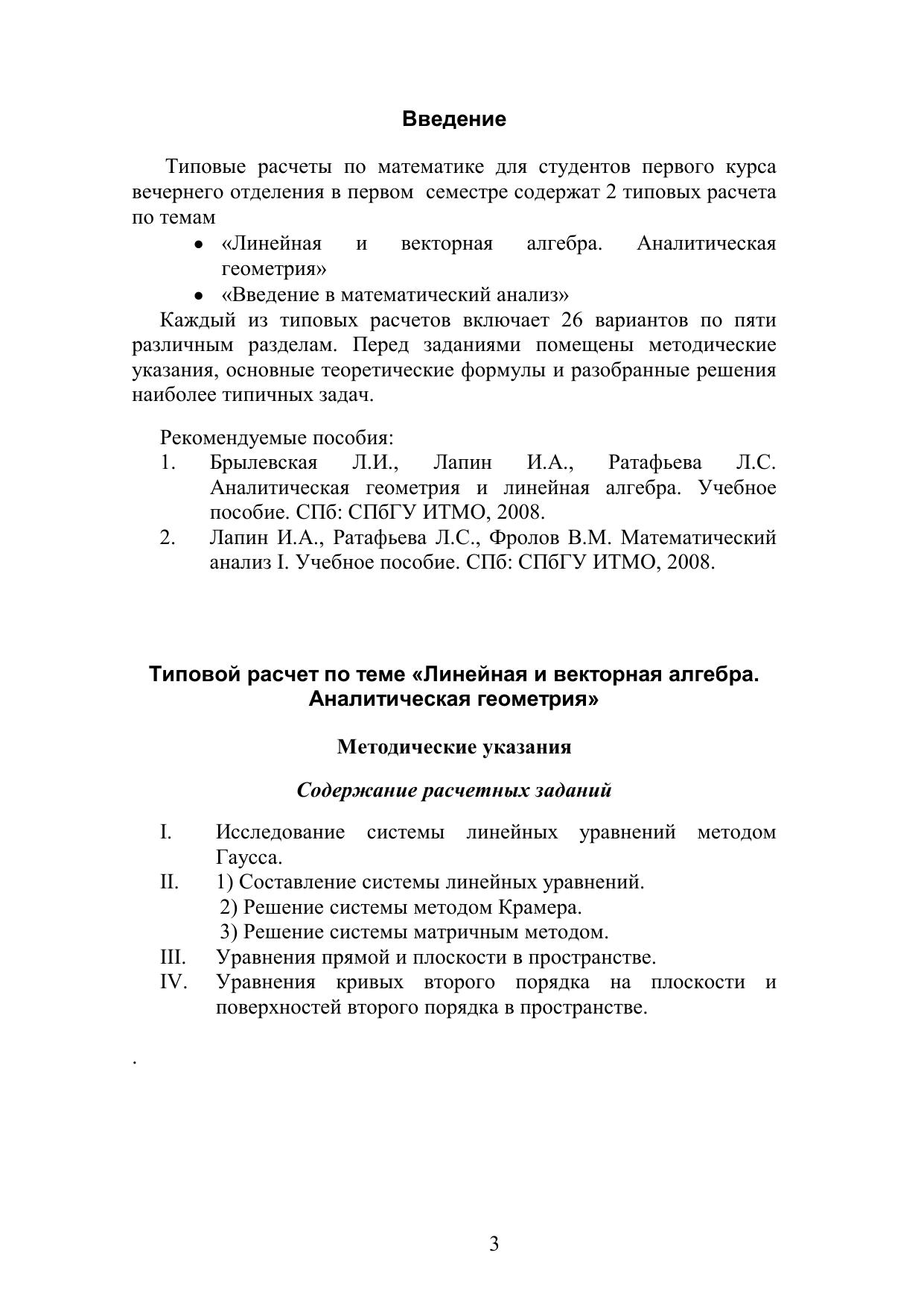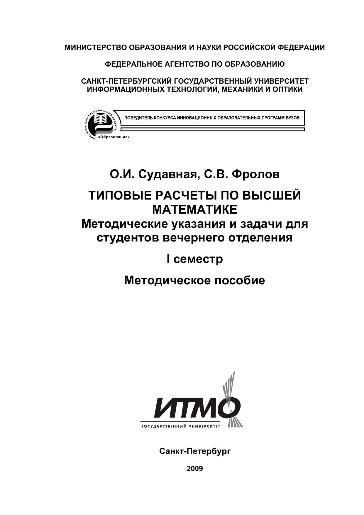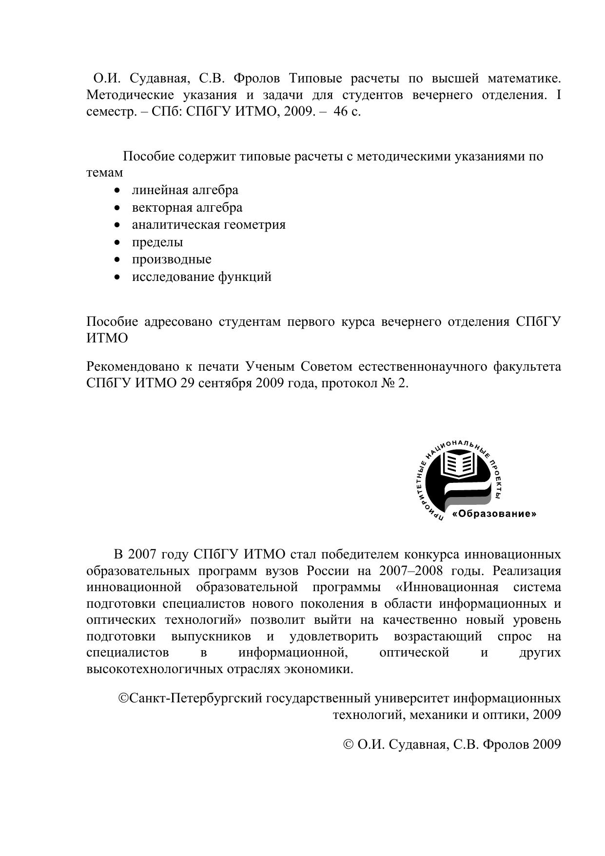 Пособие адресовано студентам первого курса вечернего отделения СПбГУ ИТМО