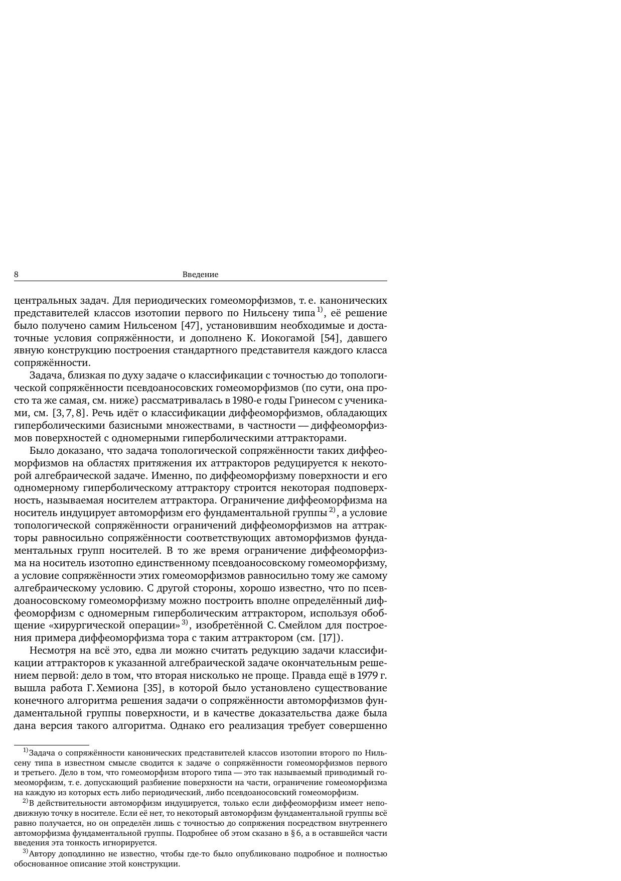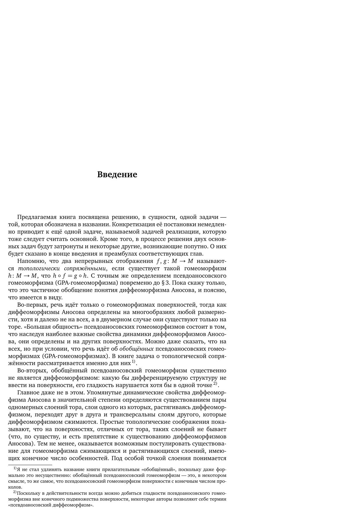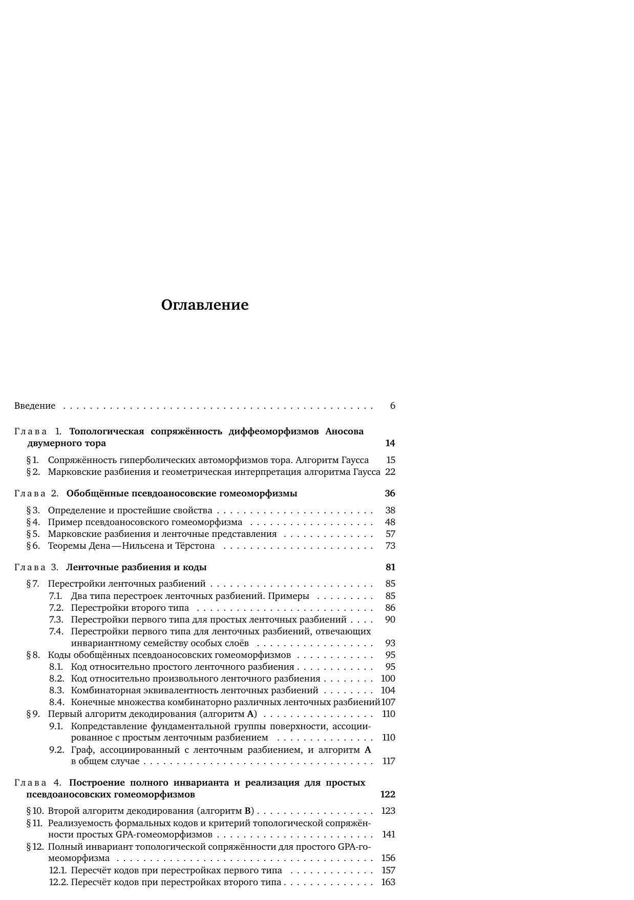 Книга посвящена задаче о топологической сопряжённости отображений. В монографии приводится её алгоритмическое решение для обобщённых псевдоаносовских гомеоморфизмов как ориентируемых, так и неориентируемых поверхностей. Это решение основано на рассмотрении марковских разбиений некоторого специального вида (ленточные разбиения) и на их описании посредством конечного набора данных (кода). Описывается универсальный способ построения обобщённого псевдоаносовского гомеоморфизма. В качестве следствия рассматривается задача об алгоритмическом перечислении обобщённых псевдоаносовских гомеоморфизмов и строятся их примеры с заданными геометрическими и динамическими характеристиками. Изложение сопровождается примерами, иллюстрирующими все рассматриваемые конструкции и алгоритмы.