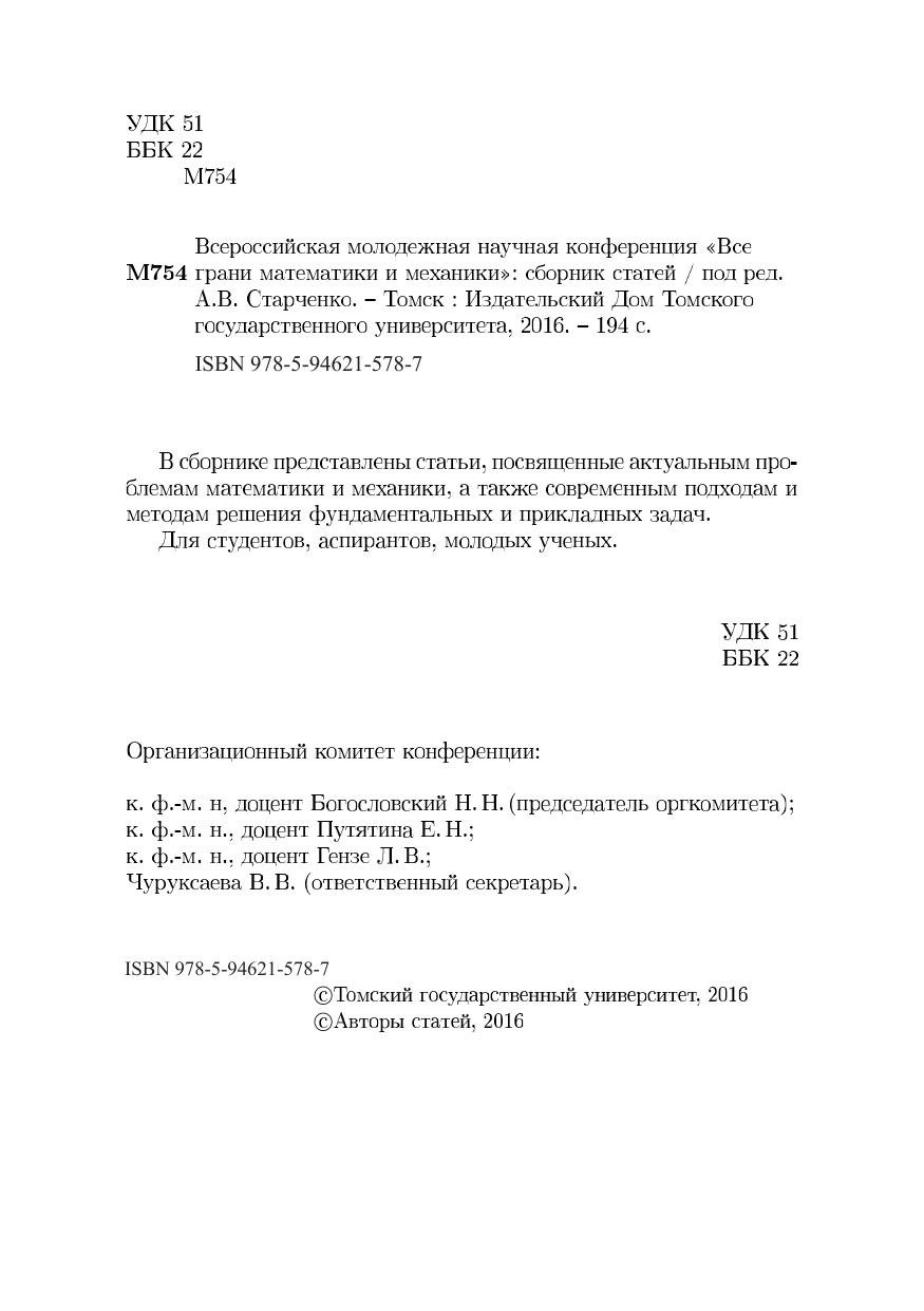 В сборнике представлены статьи, посвященные актуальным проблемам математики и механики, а также современным подходам и методам решения фундаментальных и прикладных задач. Для студентов, аспирантов, молодых ученых.