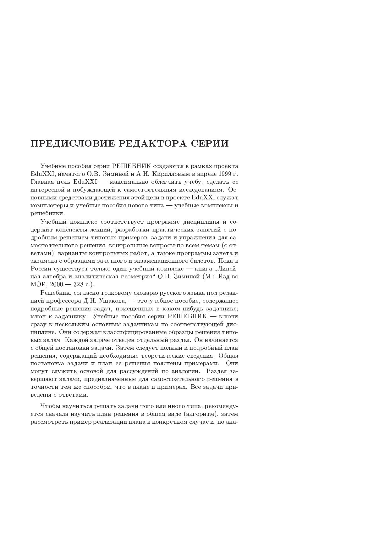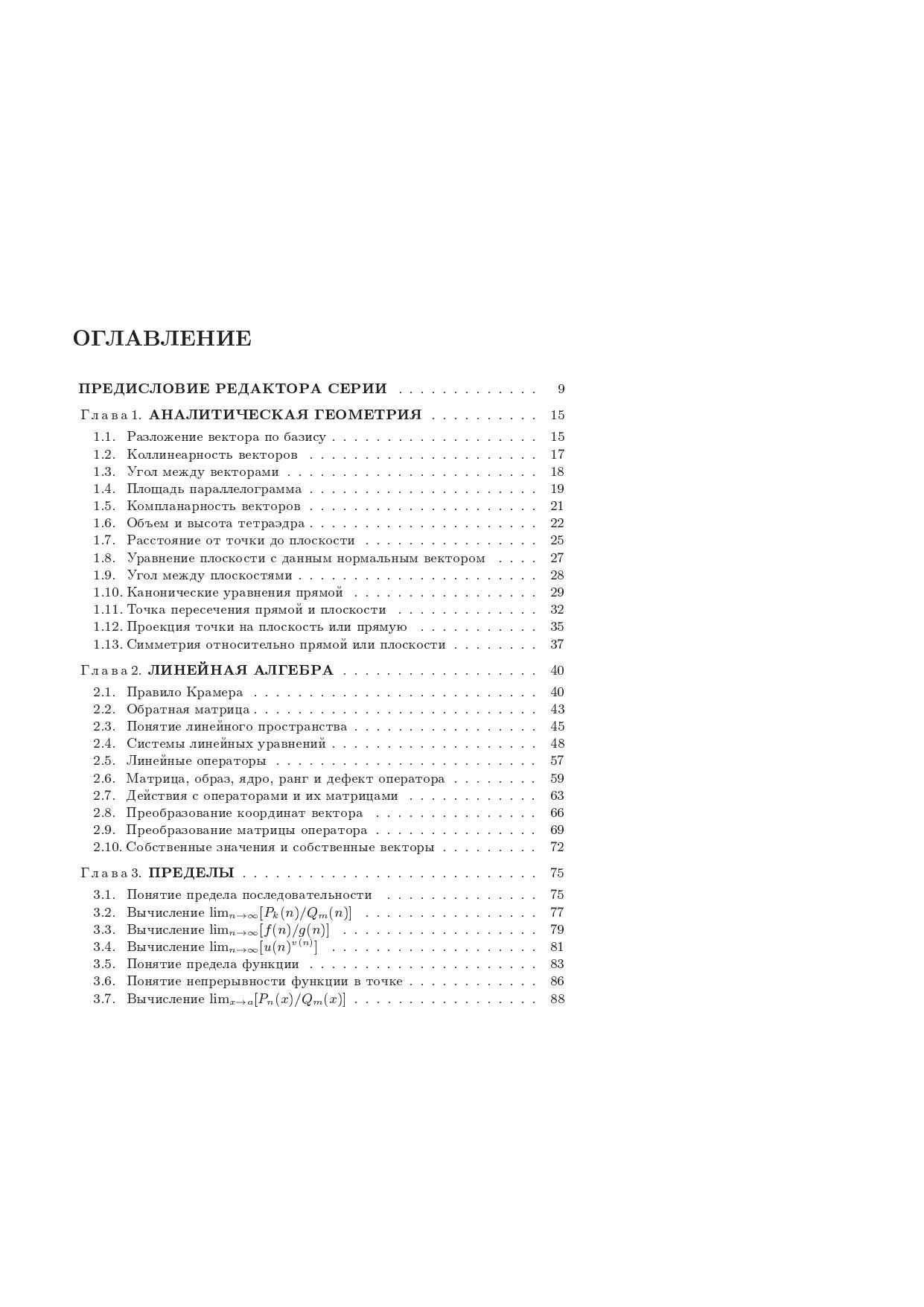 Книга содержит примеры решения почти всех типовых задач по высшей математике. Каждой задаче отведен отдельный раздел, содержащий общую постановку задачи, план ее решения с необходимыми теоретическими пояснениями и решение конкретного примера. Кроме того, в раздел включены десять задач для самостоятельного решения и ответы к ним. Для студентов и преподавателей технических, экономических и сельскохозяйственных вузов может быть использована как при очной, так и при дистанционной формах обучения