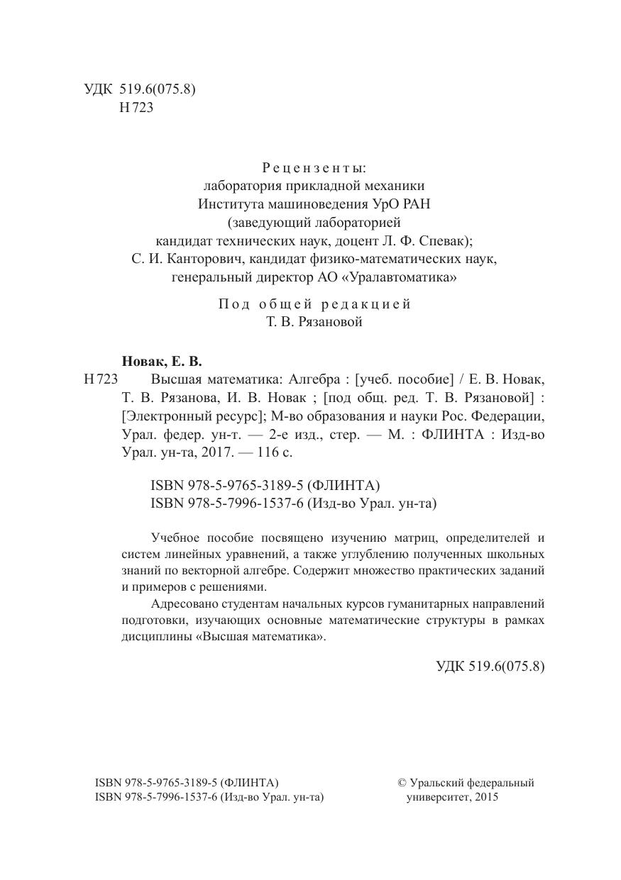 Учебное пособие посвящено изучению матриц, определителей и систем линейных уравнений, а также углублению полученных школьных знаний по векторной алгебре. Содержит множество практических заданий и примеров с решениями. Адресовано студентам начальных курсов гуманитарных направлений подготовки, изучающих основные математические структуры в рамках дисциплины «Высшая математика».