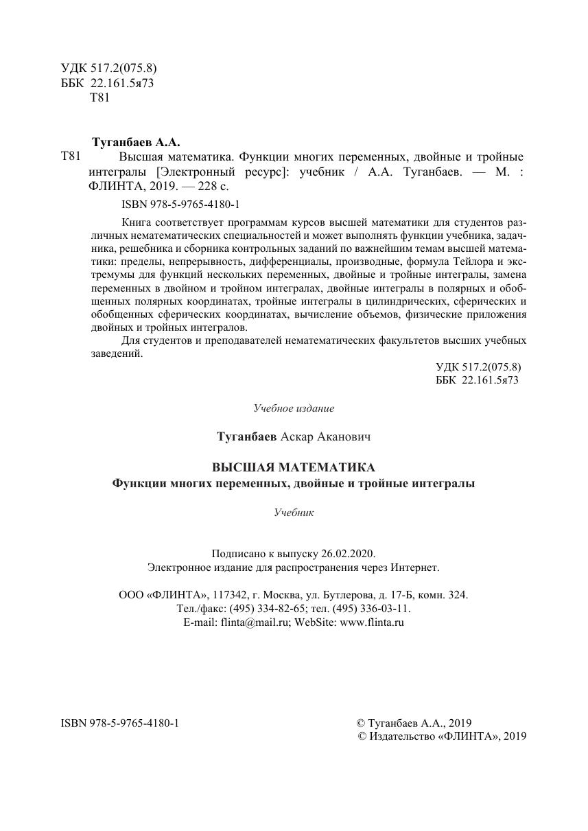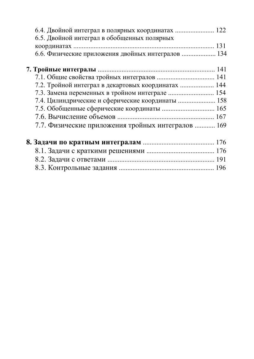 Книга соответствует программам курсов высшей математики для студентов различных нематематических специальностей и может выполнять функции учебника, задачника, решебника и сборника контрольных заданий по важнейшим темам высшей математики: пределы, непрерывность, дифференциалы, производные, формула Тейлора и экстремумы для функций нескольких переменных, двойные и тройные интегралы, замена переменных в двойном и тройном интегралах, двойные интегралы в полярных и обобщенных полярных координатах, тройные интегралы в цилиндрических, сферических и обобщенных сферических координатах, вычисление объемов, физические приложения двойных и тройных интегралов.