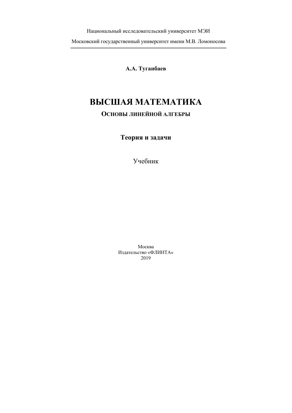 Высшая математика. Основы линейной алгебры. Теория и задачи