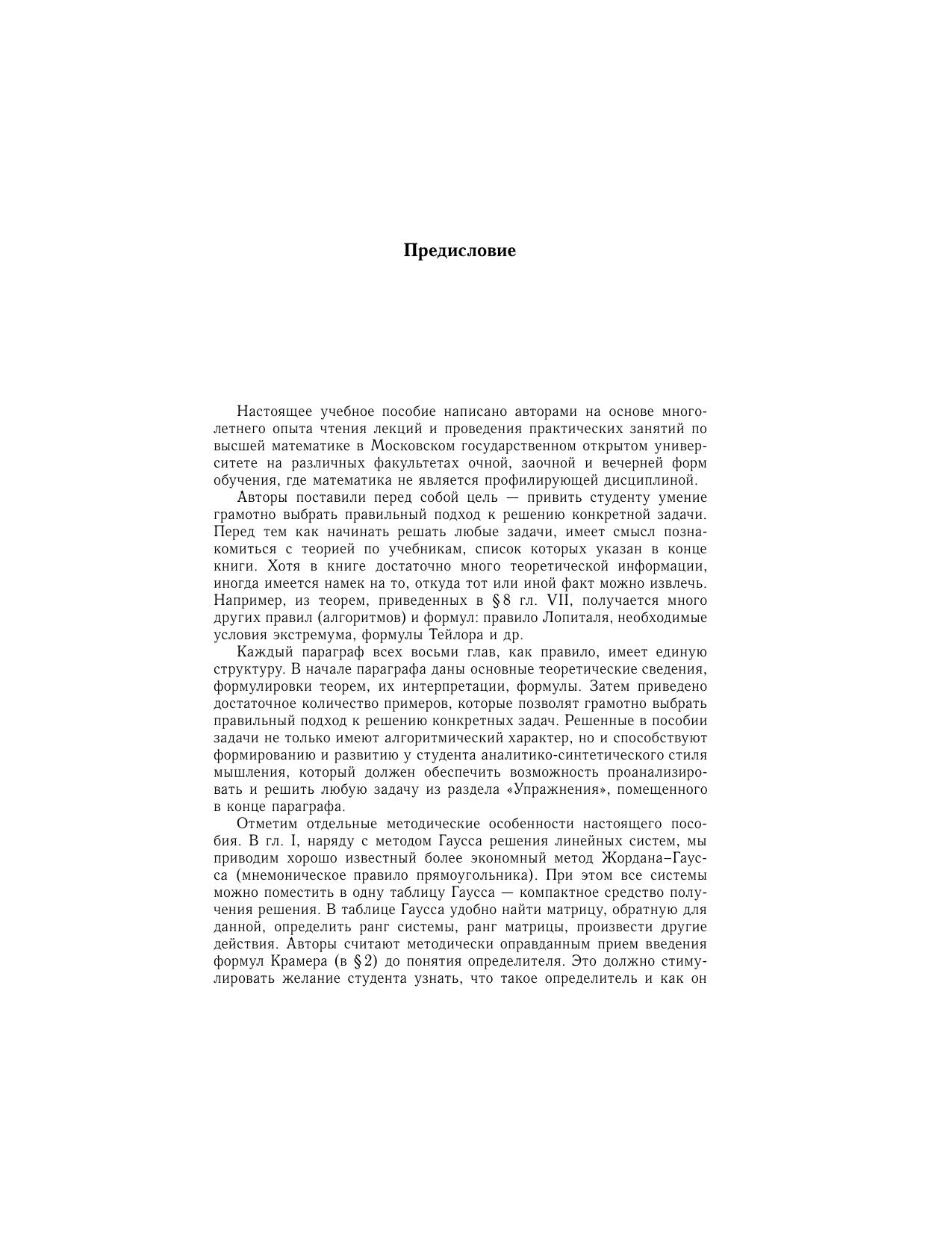 Настоящее учебное пособие написано авторами на основе многолетнего опыта чтения лекций и проведения практических занятий по высшей математике в Московском государственном Открытом университете на различных факультетах. Его следует рассматривать как некоторое методическое руководство по решению наиболее типичных математических задач. Большое внимание уделяется построению и исследованию графиков функций, вычислению пределов последовательностей и пределов функций. Авторы предлагают разные способы решения задач и используют этот прием для ознакомления читателя с большим количеством действий и выбором простейшего.