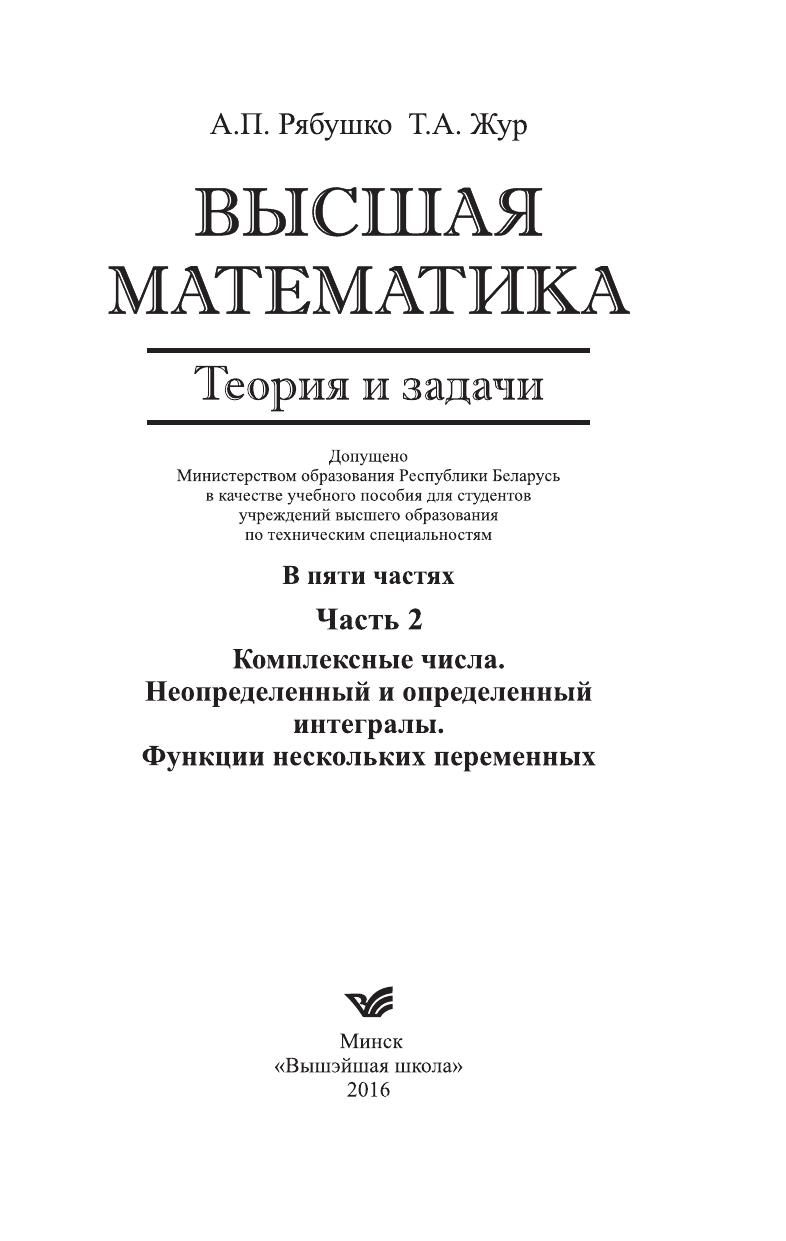 Высшая математика: теория и задачи: учебное пособие. В 5 ч. Ч. 2. Комплексные числа. Неопределенный и определенный интегралы. Функции нескольких переменных