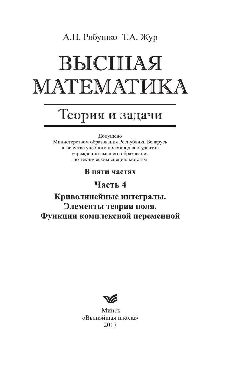 Высшая математика : теория и задачи. В 5 ч. Ч. 4. Криволинейные интегралы. Элементы теории поля. Функции комплексной переменной