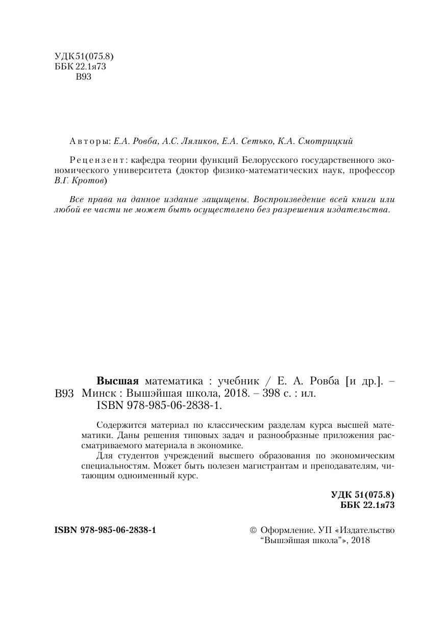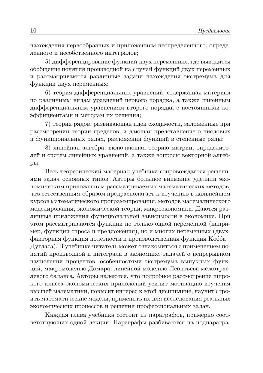 Содержится материал по классическим разделам курса высшей математики. Даны решения типовых задач и разнообразные приложения рассматриваемого материала в экономике.