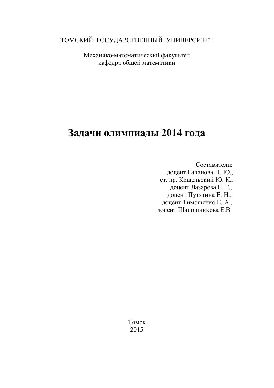Задачи олимпиады 2014 года