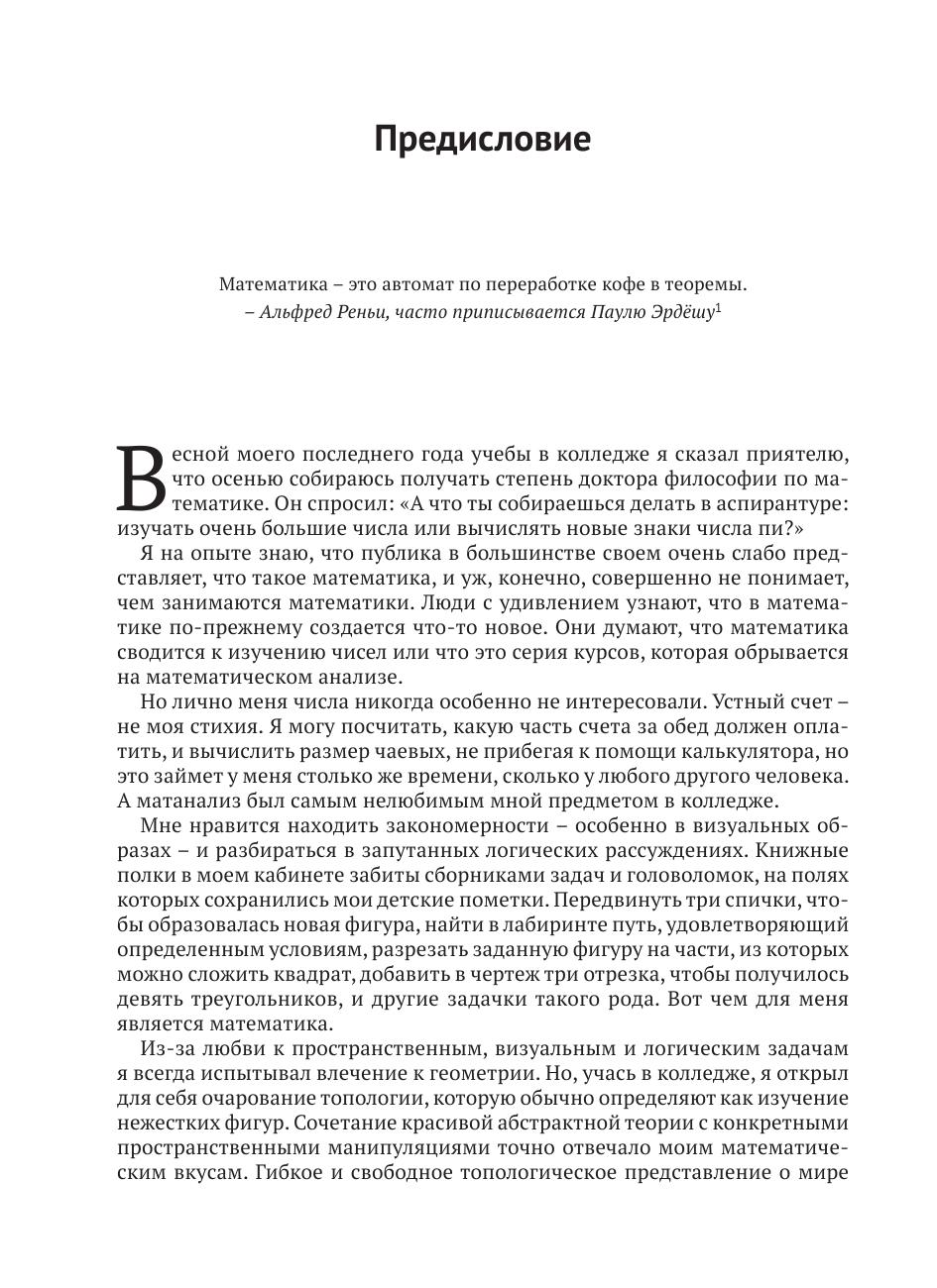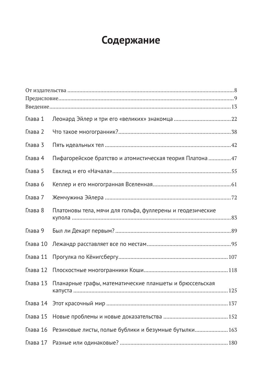 Формула Эйлера для многогранников описывает структуру многих объектов – от футбольных мячей и драгоценных камней до сложных молекул. Но при этом сама формула настолько проста, что ее можно объяснить даже ребенку. В этой книге рассказана история этой важнейшей математической идеи, а попутно приводятся занимательные факты из мира геометрии и из жизни великих математиков.