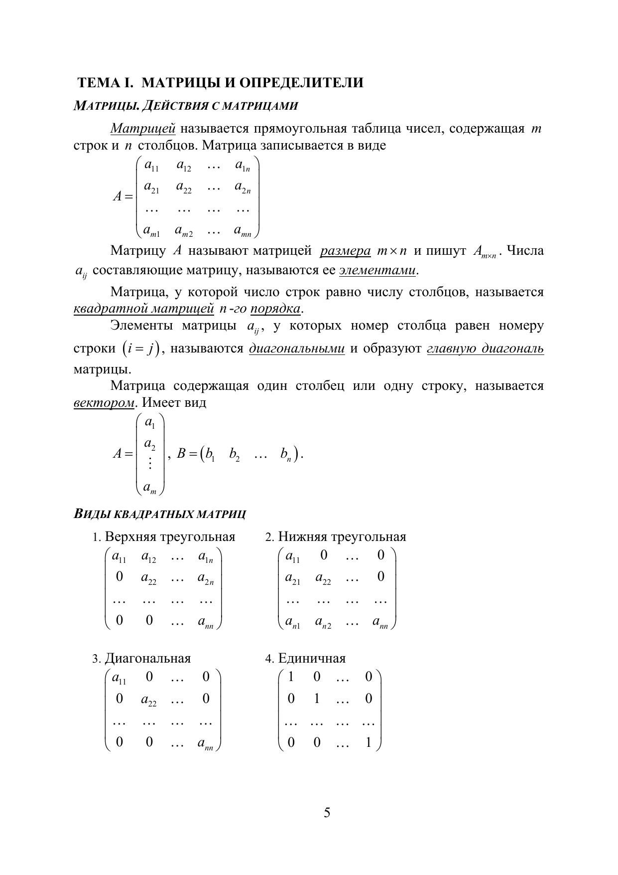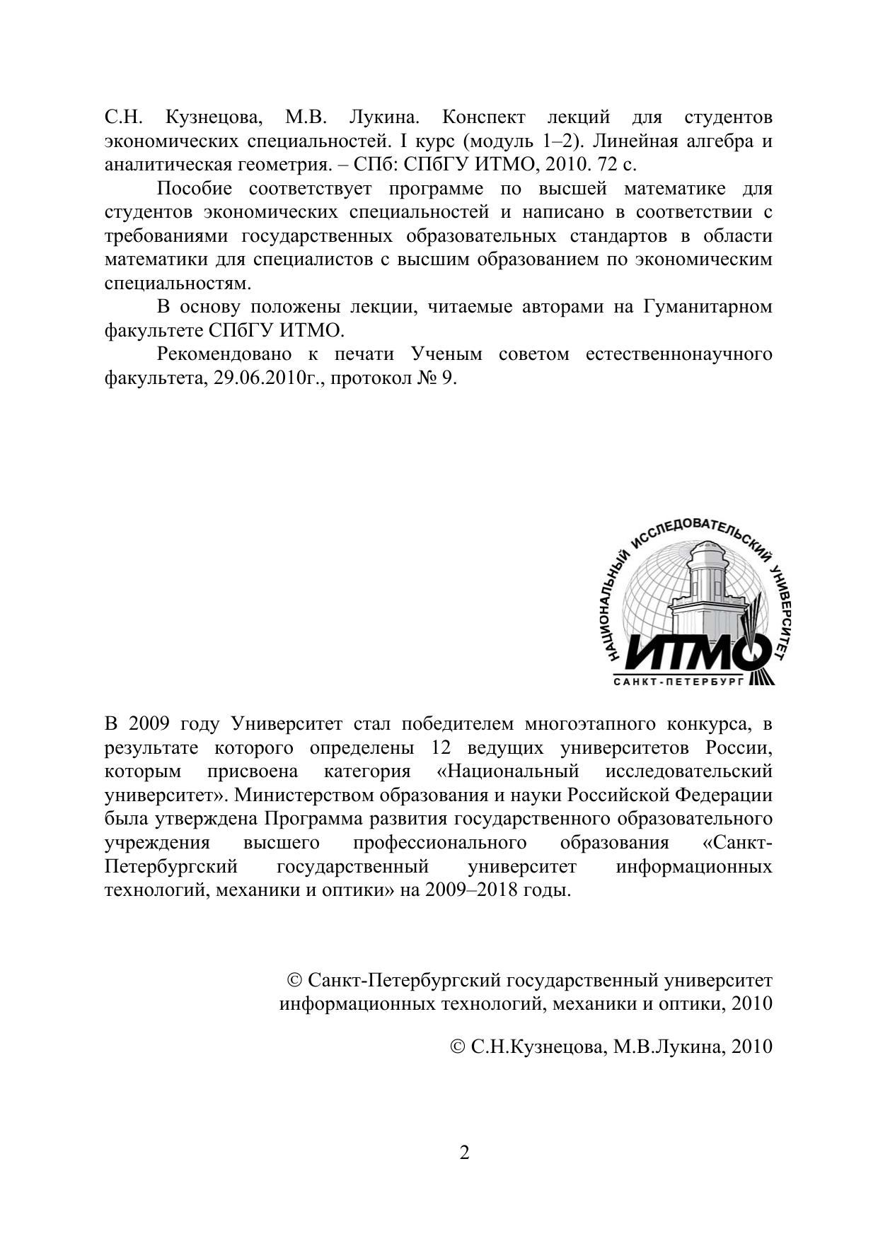Конспект лекций для студентов экономических специальностей. I курс (модуль 1–2). Линейная алгебра и аналитическая геометрия