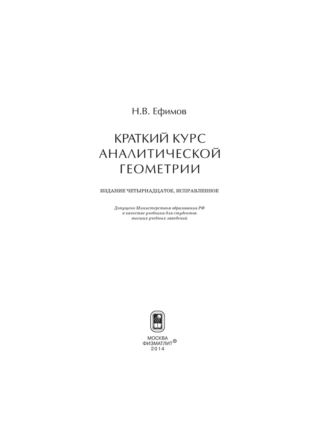 Краткий курс аналитической геометрии