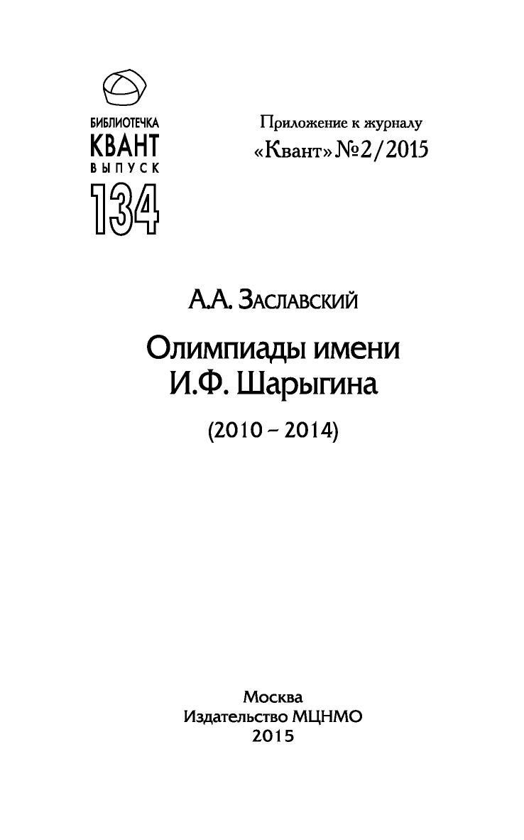 Олимпиады имени И.Ф. Шарыгина (2010-2014). Библиотечка «Квант» выпуск 134. Приложение к журналу «Квант» №2/2015