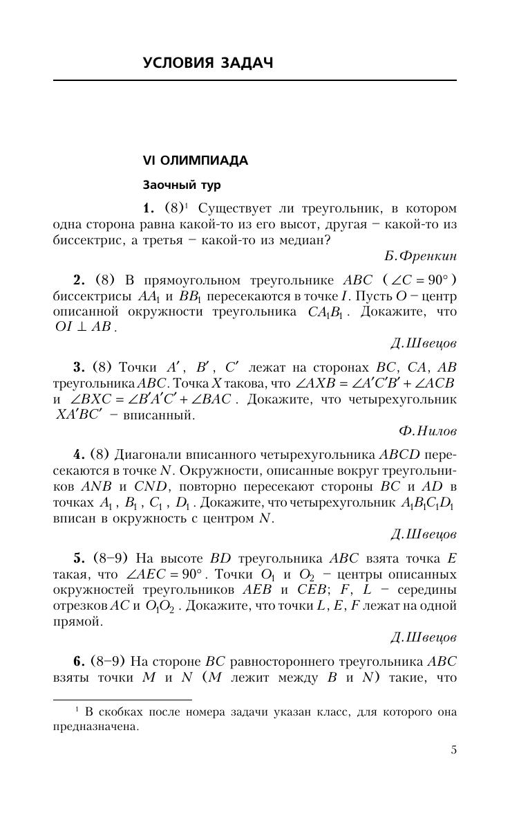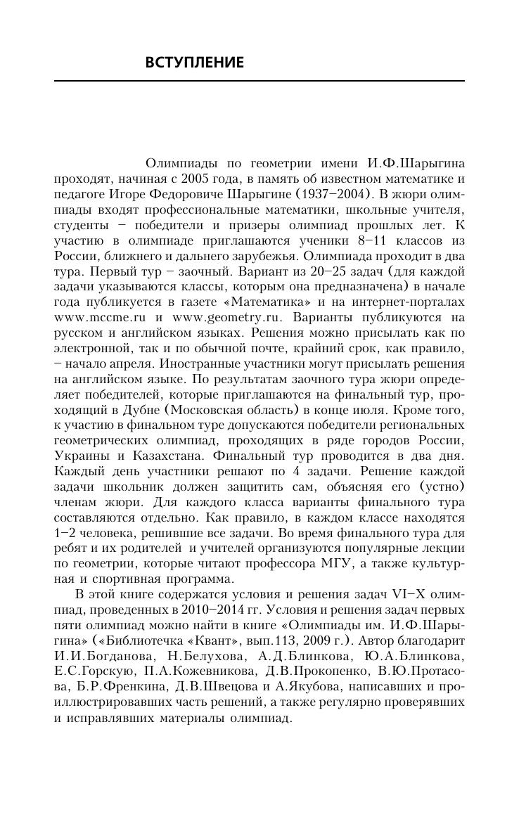 В книге приведены задачи геометрических олимпиад имени И.Ф. Шарыгина, прошедших в 2010 - 2014 годах. Ко всем задачам даны подробные решения.
