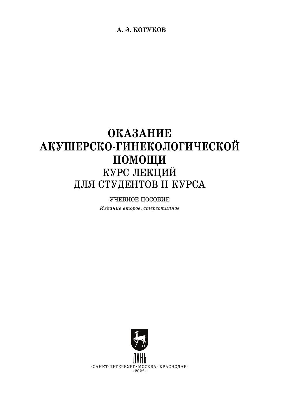 Оказание акушерско-гинекологической помощи. Курс лекций для студентов II курса