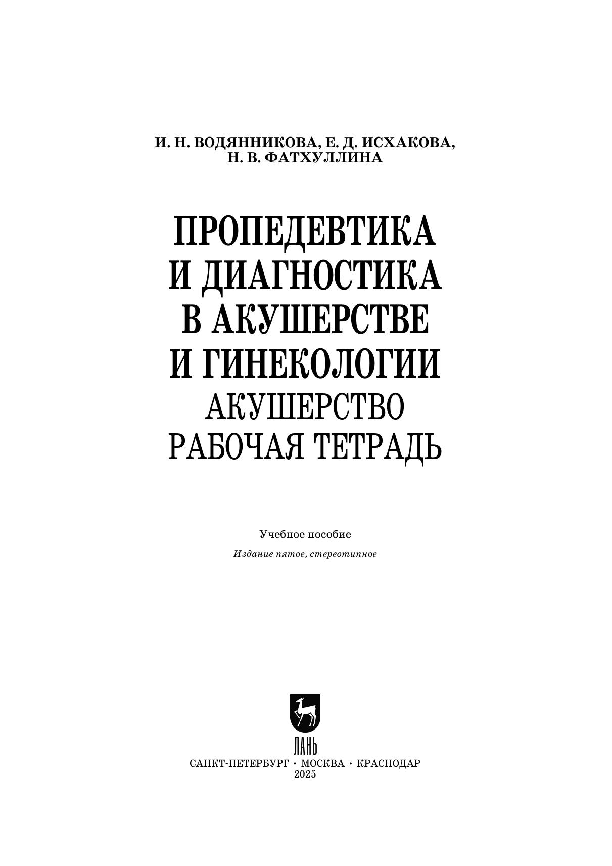 Пропедевтика и диагностика в акушерстве и гинекологии. Акушерство. Рабочая тетрадь