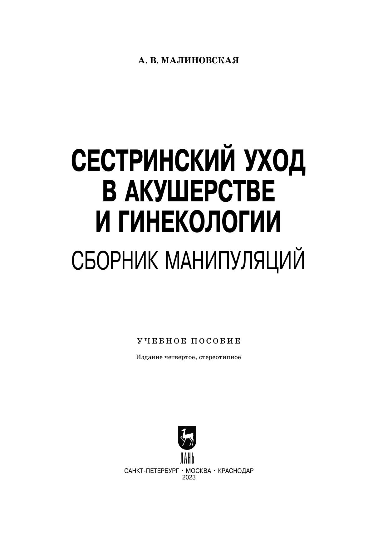 Учебное пособие содержит алгоритмы выполнения простых медицинских услуг, необходимых по уходу за пациентками в области акушерства и гинекологии, и призвано улучшать качество оказываемой медицинской помощи. Методика и техника описания выполнения технологии простых медицинских услуг по сестринскому уходу в акушерстве и гинекологии составлены в строгой последовательности. При разработке пособия учтены требования нормативных документов Министерства здравоохранения Российской Федерации, регламентирующих деятельность специалистов среднего звена в области акушерства и гинекологии. Соответствует современным требованиям Федерального государственного образовательного стандарта среднего профессионального образования и профессиональным квалификационным требованиям. Рекомендовано в качестве учебного пособия для студентов медицинских образовательных учреждений среднего профессионального образования, а также преподавателей медицинских техникумов, училищ и колледжей, слушателей отделения повышения квалификации по специальностям «Сестринское дело», «Акушерское дело», «Лечебное дело» и медицинских работников.