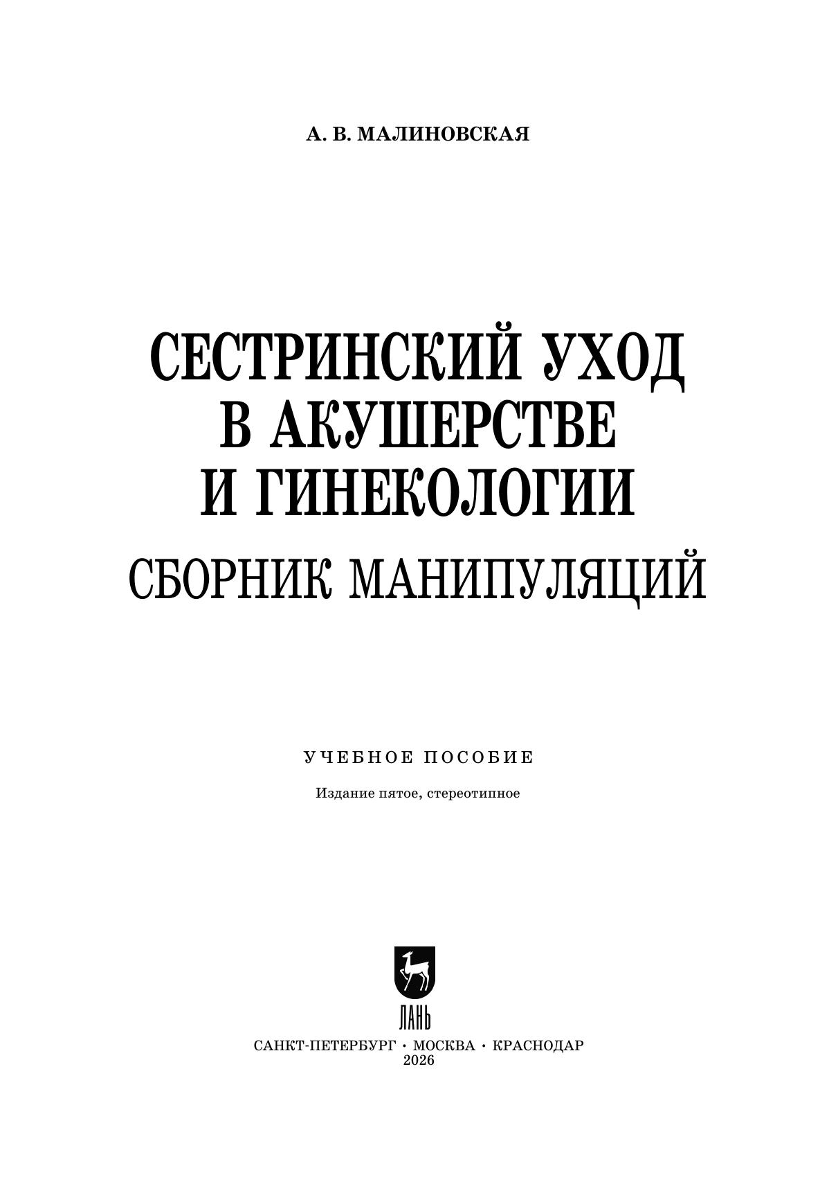 Учебное пособие содержит алгоритмы выполнения простых медицинских услуг, необходимых по уходу за пациентками в области акушерства и гинекологии, и призвано улучшать качество оказываемой медицинской помощи. Методика и техника описания выполнения технологии простых медицинских услуг по сестринскому уходу в акушерстве и гинекологии составлены в строгой последовательности. При разработке пособия учтены требования нормативных документов Министерства здравоохранения Российской Федерации, регламентирующих деятельность специалистов среднего звена в области акушерства и гинекологии. Соответствует современным требованиям Федерального государственного образовательного стандарта среднего профессионального образования и профессиональным квалификационным требованиям. Рекомендовано в качестве учебного пособия для студентов медицинских образовательных учреждений среднего профессионального образования, а также преподавателей медицинских техникумов, училищ и колледжей, слушателей отделения повышения квалификации по специальностям «Сестринское дело», «Акушерское дело», «Лечебное дело» и медицинских работников.