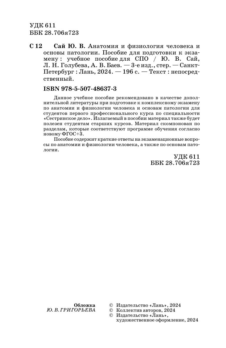 Данное учебное пособие рекомендовано в качестве дополнительной литературы при подготовке к комплексному экзамену по анатомии и физиологии человека и основам патологии для студентов первого профессионального курса по специальности «Сестринское дело». Излагаемый в пособии материал также будет полезен студентам старших курсов. Материал скомпонован по разделам, которые соответствуют программе обучения согласно новому ФГОС +3. Пособие содержит краткие ответы на экзаменационные вопросы по анатомии и физиологии человека, а также по основам патологии. Соответствует современным требованиям Федерального государственного образовательного стандарта среднего профессионального образования и профессиональным квалификационным требованиям.