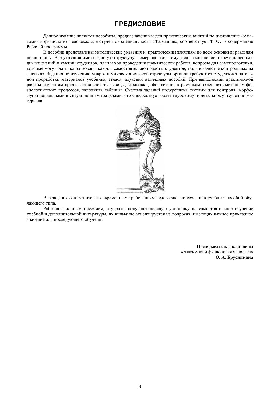 В книге представлены методические указания к практическим занятиям по всем основным разделам дисциплины. Все указания имеют единую структуру: номер занятия, тему, цели, оснащение, перечень необходимых знаний и умений студентов, план и ход проведения практической работы, вопросы для самоподготовки, которые могут быть использованы как для самостоятельной работы студентов, так и в качестве контрольных на занятиях. Пособие предназначено для практических занятий по дисциплине «Анатомия и физиология человека» для студентов специальности «Фармация», соответствует ФГОС и содержанию рабочей программы.