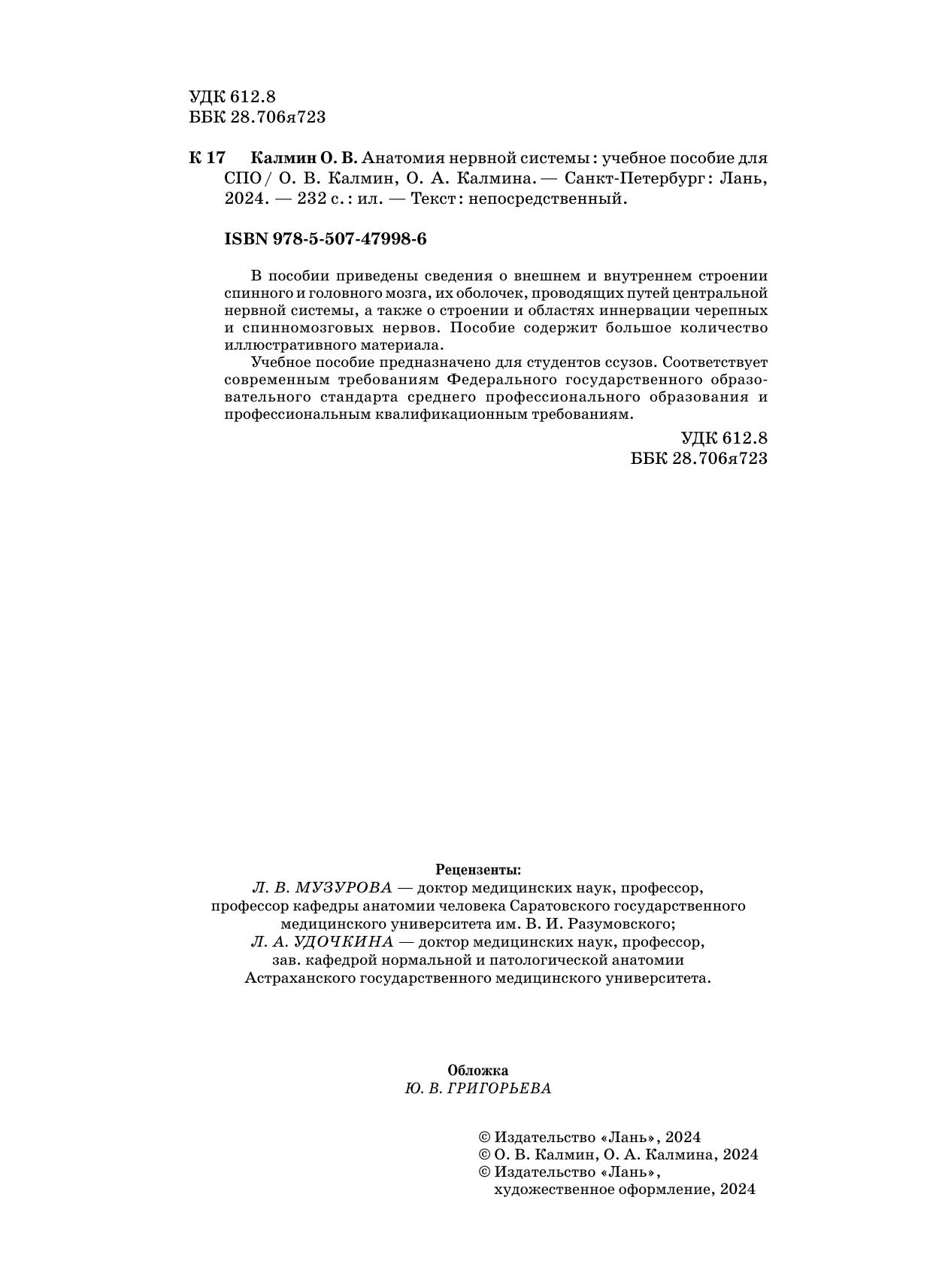 В пособии приведены сведения о внешнем и внутреннем строении спинного и головного мозга, их оболочек, проводящих путей центральной нервной системы, а также о строении и областях иннервации черепных и спинномозговых нервов. Пособие содержит большое количество иллюстративного материала Учебное пособие предназначено для студентов ссузов. Соответствует современным требованиям Федерального государственного образовательного стандарта среднего профессионального образования и профессиональным квалификационным требованиям.