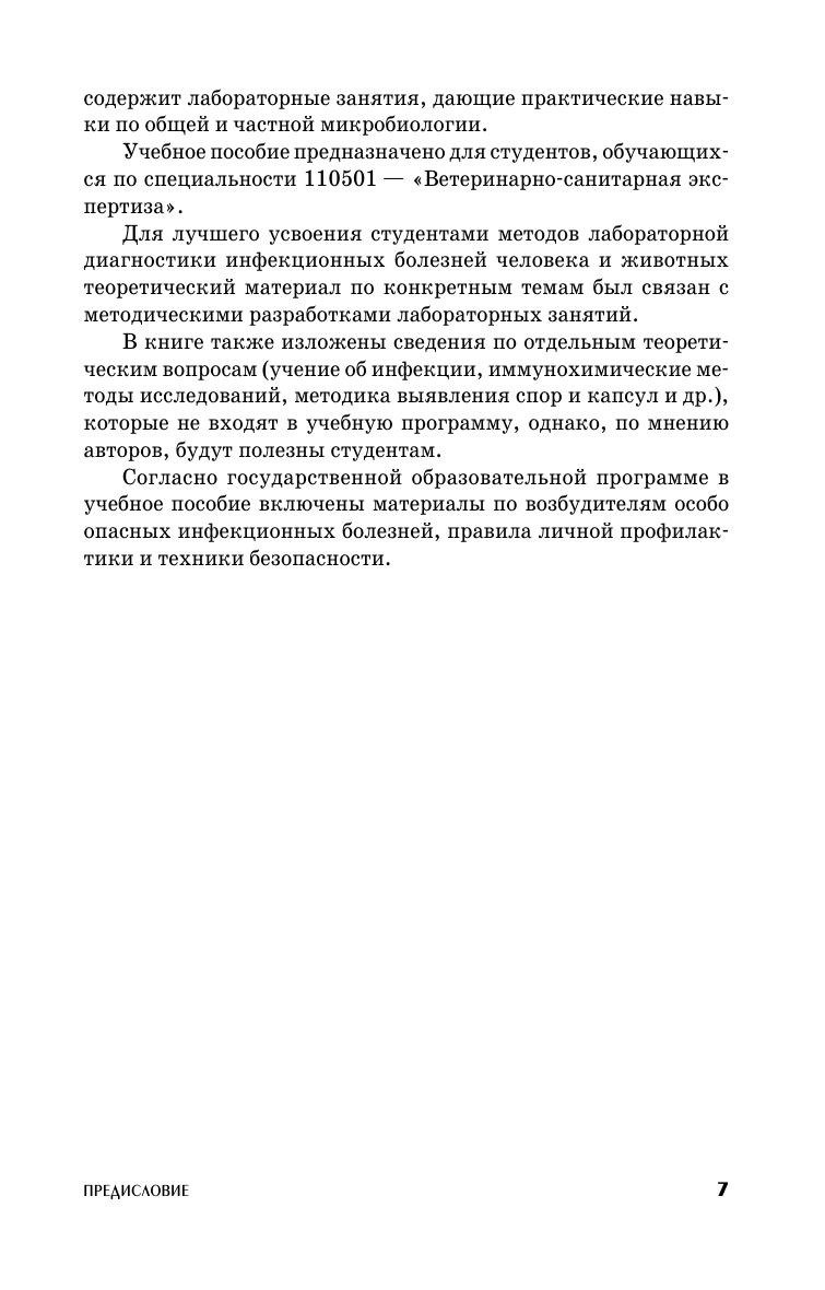 В первой части учебного пособия изложены основы общей и частной микробиологии: история возникновения; предмет и задачи; принципы систематики; морфология и строение микроорганизмов; физиология и генетика бактерий; действие факторов внешней среды на микроорганизмы и экология микроорганизмов; морфология; тинкториальные и биохимические свойства возбудителей болезней; методы лабораторной диагностики, а также средства специфической профилактики и лечения. Во второй части представлены основы учения об инфекции и иммунитете; понятия об использовании вакцин, сывороток и диагностических препаратов. В третьей части даны лабораторные занятия по общей и частной микробиологии.