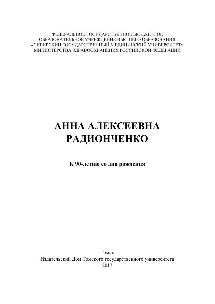 Анна Алексеевна Радионченко. К 90-летию со дня рождения