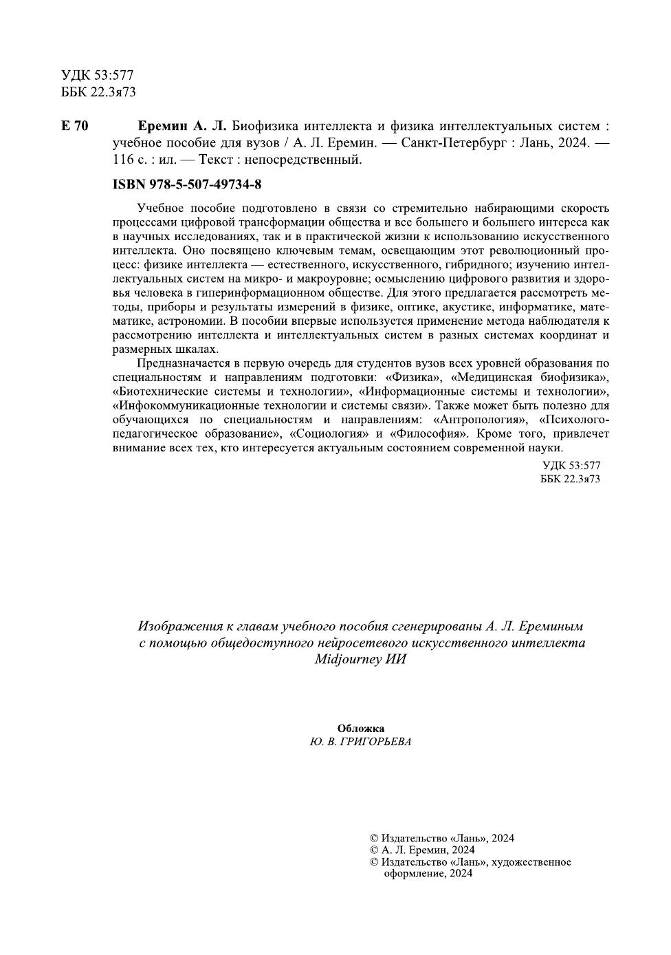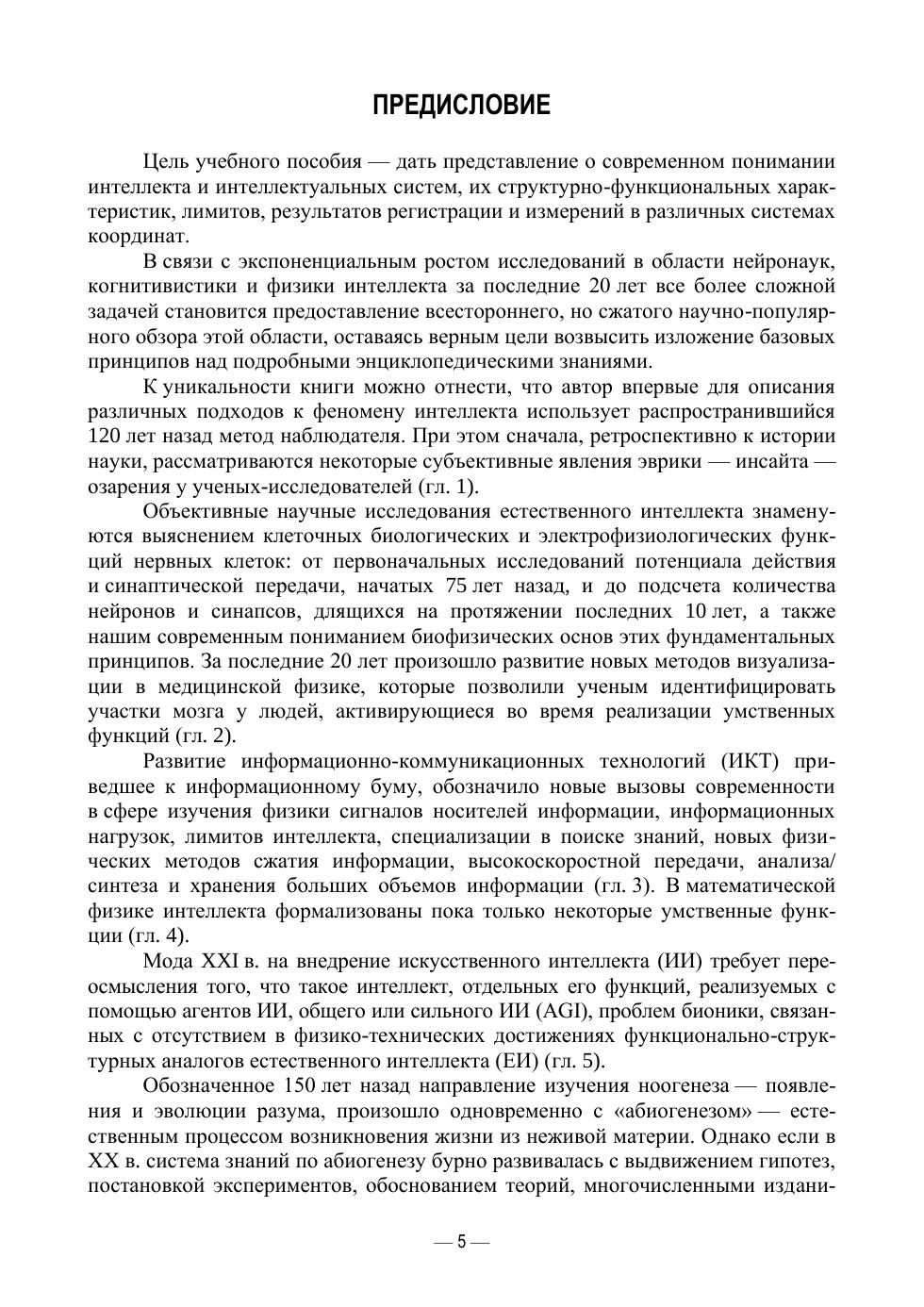 Учебное пособие подготовлено в связи со стремительно набирающими скорость процессами цифровой трансформации общества и все большего и большего интереса как в научных исследованиях, так и в практической жизни к использованию искусственного интеллекта. Оно посвящено ключевым темам, освещающим этот революционный процесс: физике интеллекта — естественного, искусственного, гибридного, изучению интеллектуальных систем на микро- и макроуровне, осмыслению цифрового развития и здоровья человека в гиперинформационном обществе. Для этого предлагается рассмотреть методы, приборы и результаты измерений в физике, оптике, акустике, информатике, математике, астрономии. В пособии впервые используется применение метода наблюдателя к рассмотрению интеллекта и интеллектуальных систем в разных системах координат и размерных шкалах. Предназначается в первую очередь для студентов вузов всех уровней образования по специальностям и направлениям подготовки: «Физика», «Медицинская биофизика», «Биотехнические системы и технологии», «Информационные системы и технологии», «Инфокоммуникационные технологии и системы связи». Также может быть полезно для обучающихся по специальностям и направлениям: «Антропология», «Психолого-педагогическое образование», «Социология» и «Философия». Кроме того, привлечет внимание всех тех, кто интересуется актуальным состоянием современной науки.