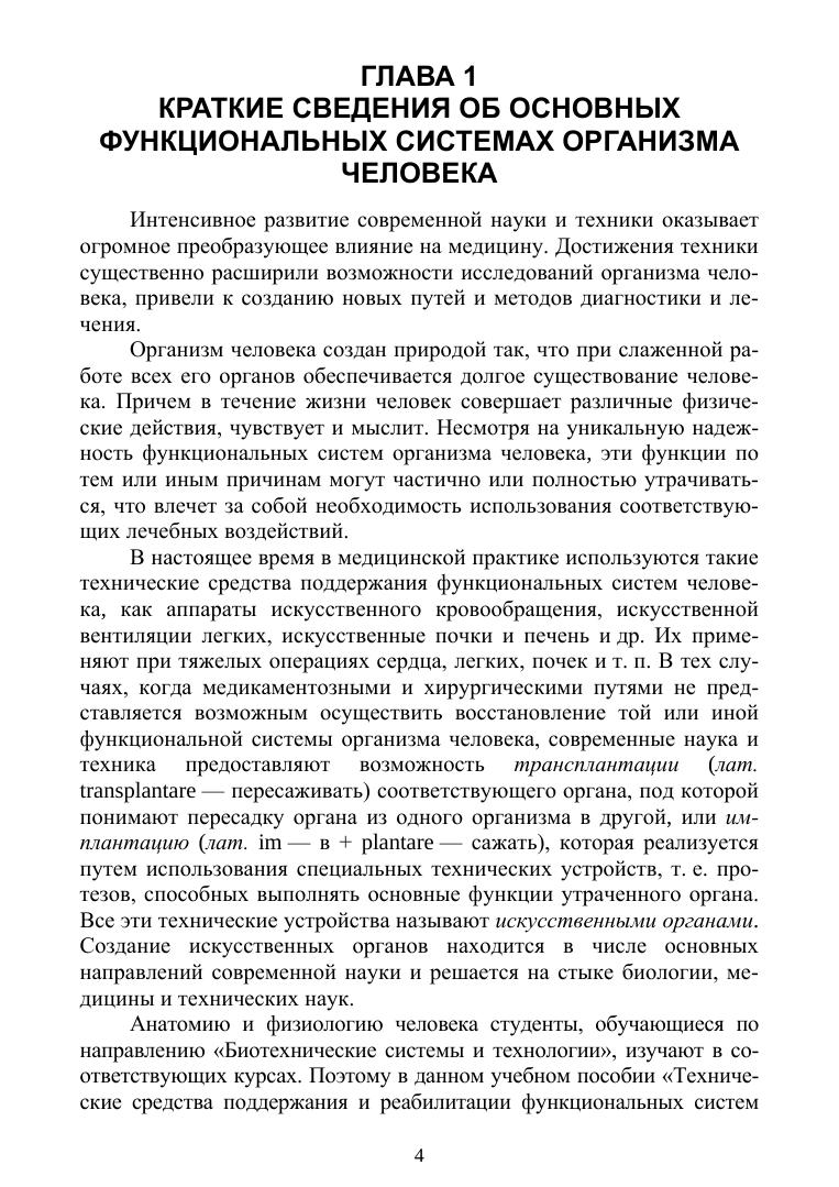 Приводятся краткие сведения об основных функциональных системах организма человека. Излагаются принципы действия аппаратов искусственных сердца, легких, почек, печени и др., описывается их работа. Рассматриваются современные средства реабилитации функциональных систем организма человека, такие как бионические протезы конечностей, сердца, уха, глаза и др. Пособие предназначено для студентов, обучающихся по направлению подготовки "Биотехнические системы и технологии". Также пособие может быть полезно для студентов, обучающихся по специальности "Лечебное дело", "Анестезиология-реаниматология", научным работникам и инженерам, занимающимся разработкой средств медицинской техники.