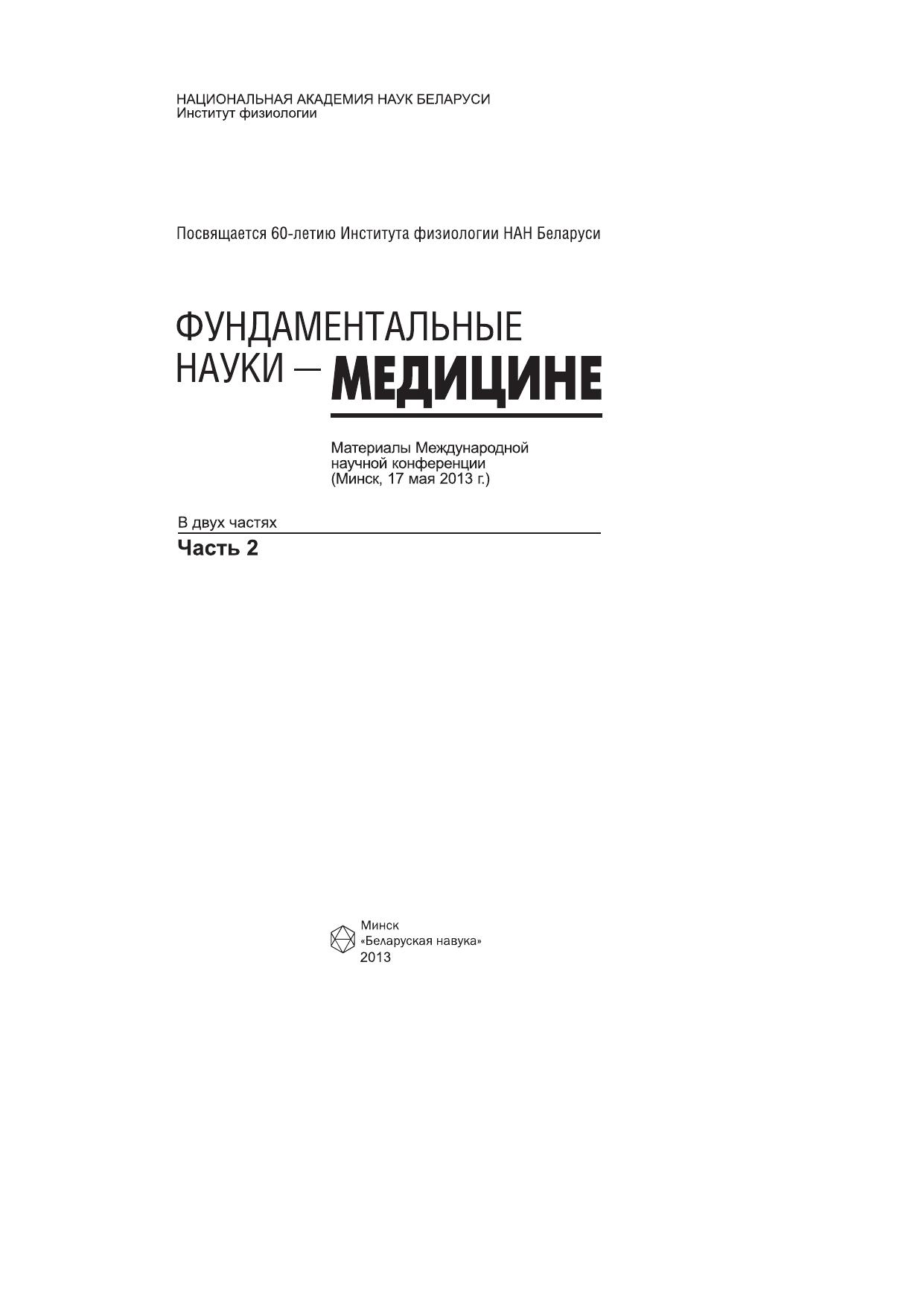 Фундаментальные науки – медицине: материалы Междунар. науч. конф. (Минск, 17 мая 2013 г.). В 2 ч. Ч. 2