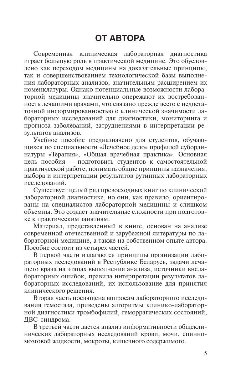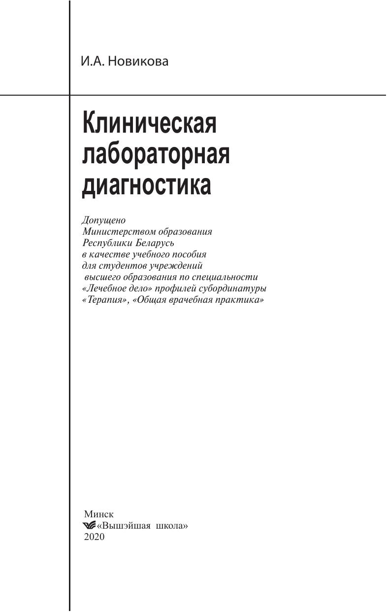 Излагаются принципы организации клинических лабораторных исследований в Республике Беларусь, задачи лечащего врача на этапах выполнения анализа, источники внелабораторных ошибок, правила интерпретации результатов лабораторных исследований. Рассматривается клинико-диагностическое значение общеклинических, биохимических и коагулологических исследований. Для студентов учреждений высшего образования по специальности «Лечебное дело» профилей субординатуры «Терапия», «Общая врачебная практика».