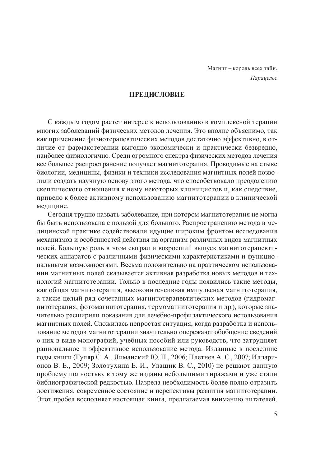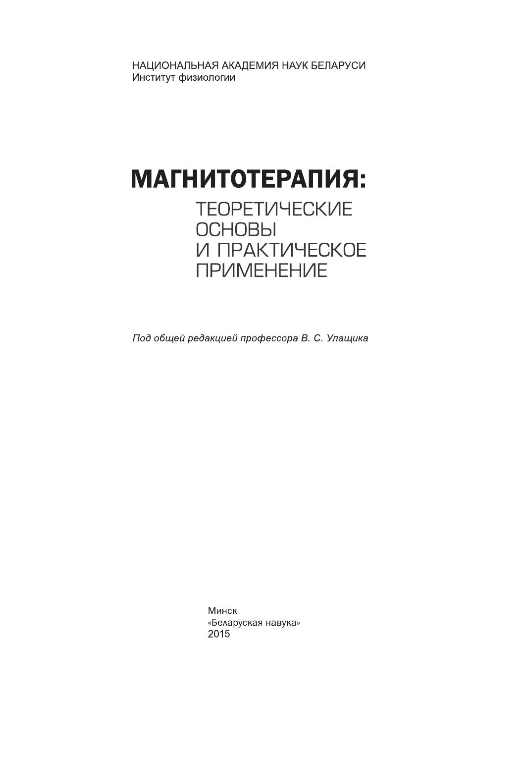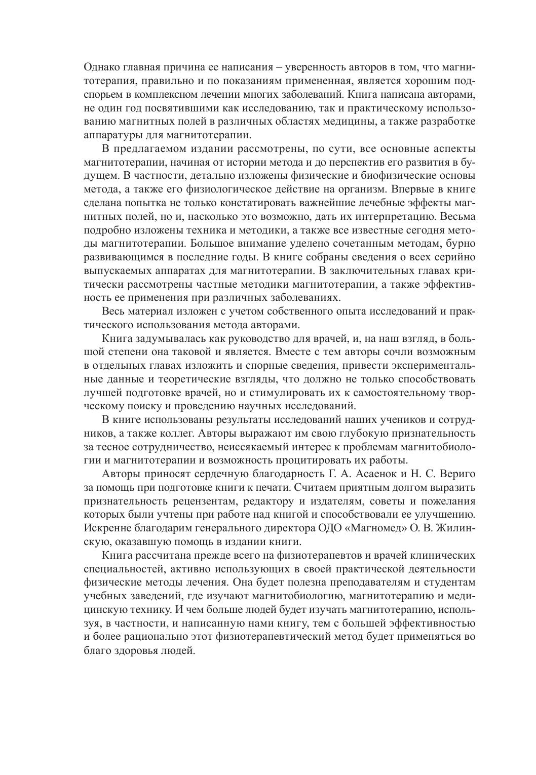 Книга посвящена актуальной проблеме клинической и физической медицины – использованию с лечебно-профилактическими и реабилитационными целями магнитных полей различных параметров. В ней освещены важнейшие сведения о магнитных полях, их взаимодействии с системами организма и механизмах физиологического и лечебного действия. Дана характеристика всех современных методов магнитотерапии, описаны показания и противопоказания к их применению, а также магнитотерапевтическая аппаратура. Большое внимание уделено изложению терапевтической эффективности наиболее распространенных методов магнитотерапии. Книга предназначена для физиотерапевтов, курортологов, практикующих врачей и специалистов, интересующихся проблемами физической медицины.