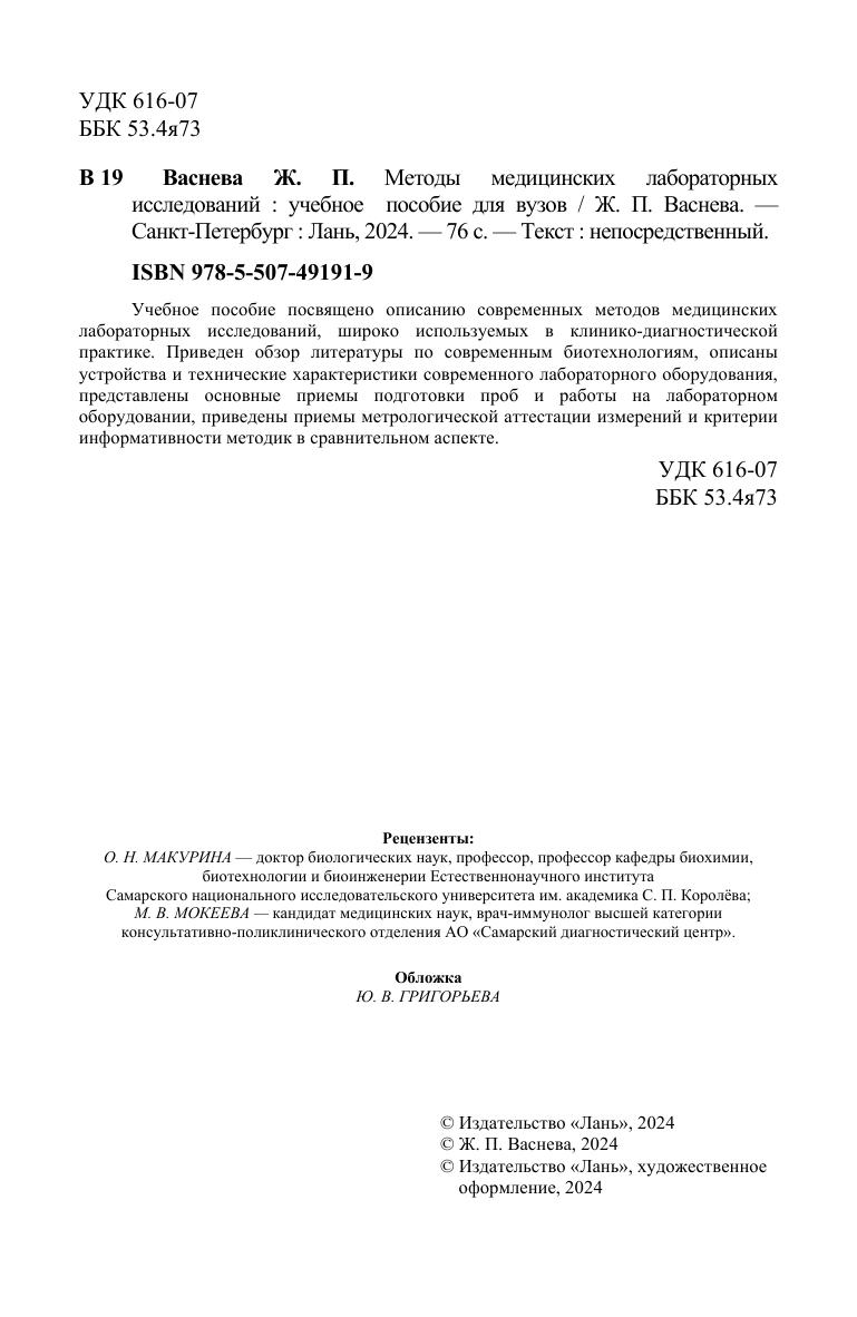 Учебное пособие посвящено описанию современных методов медицинских лабораторных исследований, широко используемых в клинико-диагностической практике. Приведен обзор литературы по современным биотехнологиям, описаны устройства и технические характеристики современного лабораторного оборудования, представлены основные приемы подготовки проб и работы на лабораторном оборудовании, приведены приемы метрологической аттестации измерений и критерии информативности методик в сравнительном аспекте.