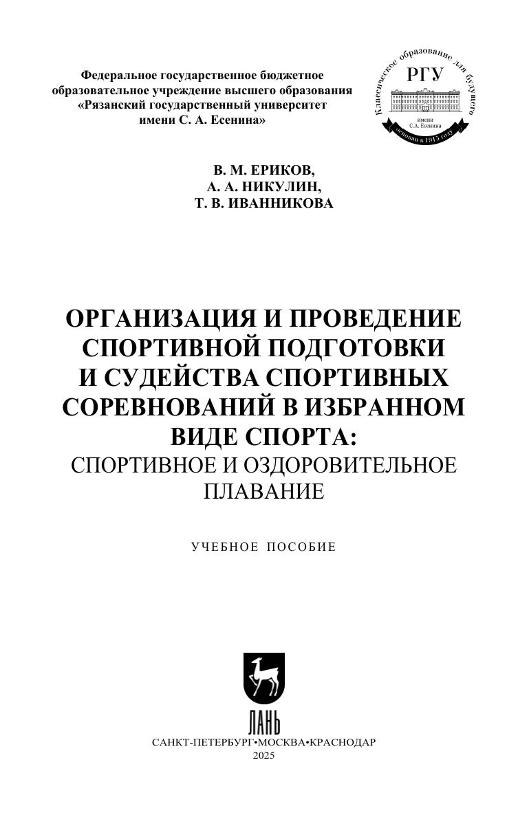 Организация и проведение спортивной подготовки и судейства спортивных соревнований в избранном виде спорта: спортивное и оздоровительное плавание