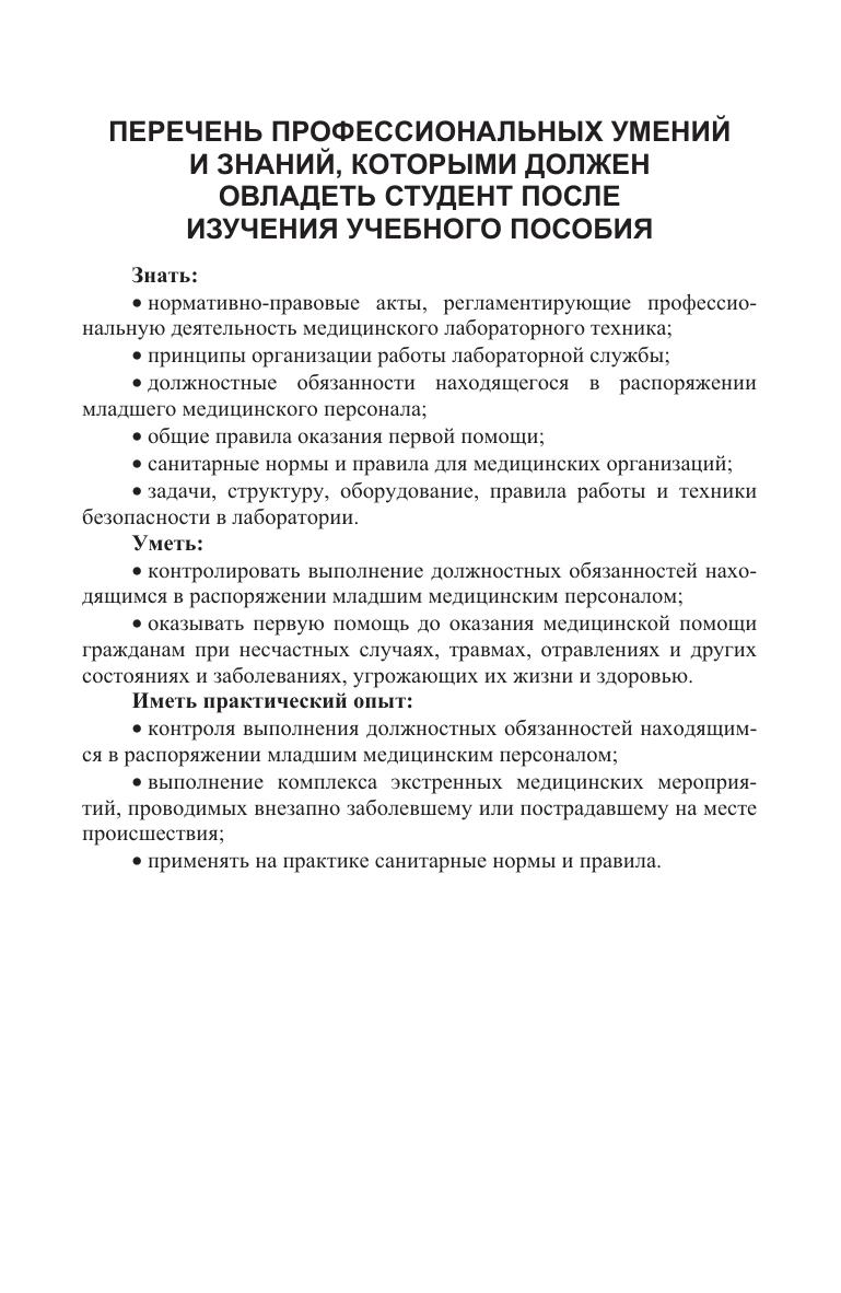 В учебном пособии изложены сведения об истории развития и системе организации службы клинической лабораторной диагностики, основные критерии оценки деятельности и производственные задачи, направления и перспективы совершенствования клинико-лабораторной деятельности, рассмотрены вопросы контроля качества и аккредитации. Соответствует современным требованиям Федерального государственного образовательного стандарта среднего профессионального образования и профессиональным квалификационным требованиям.