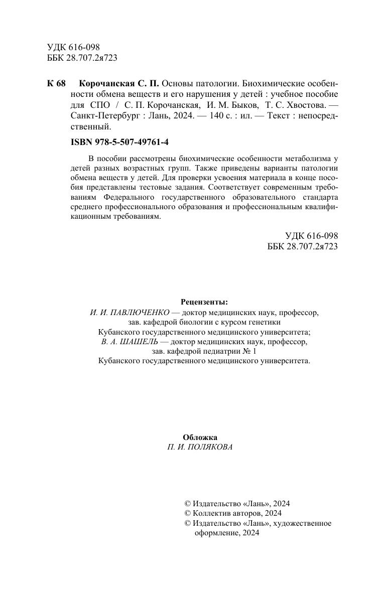 Основы патологии. Биохимические особенности обмена веществ и его нарушения у детей