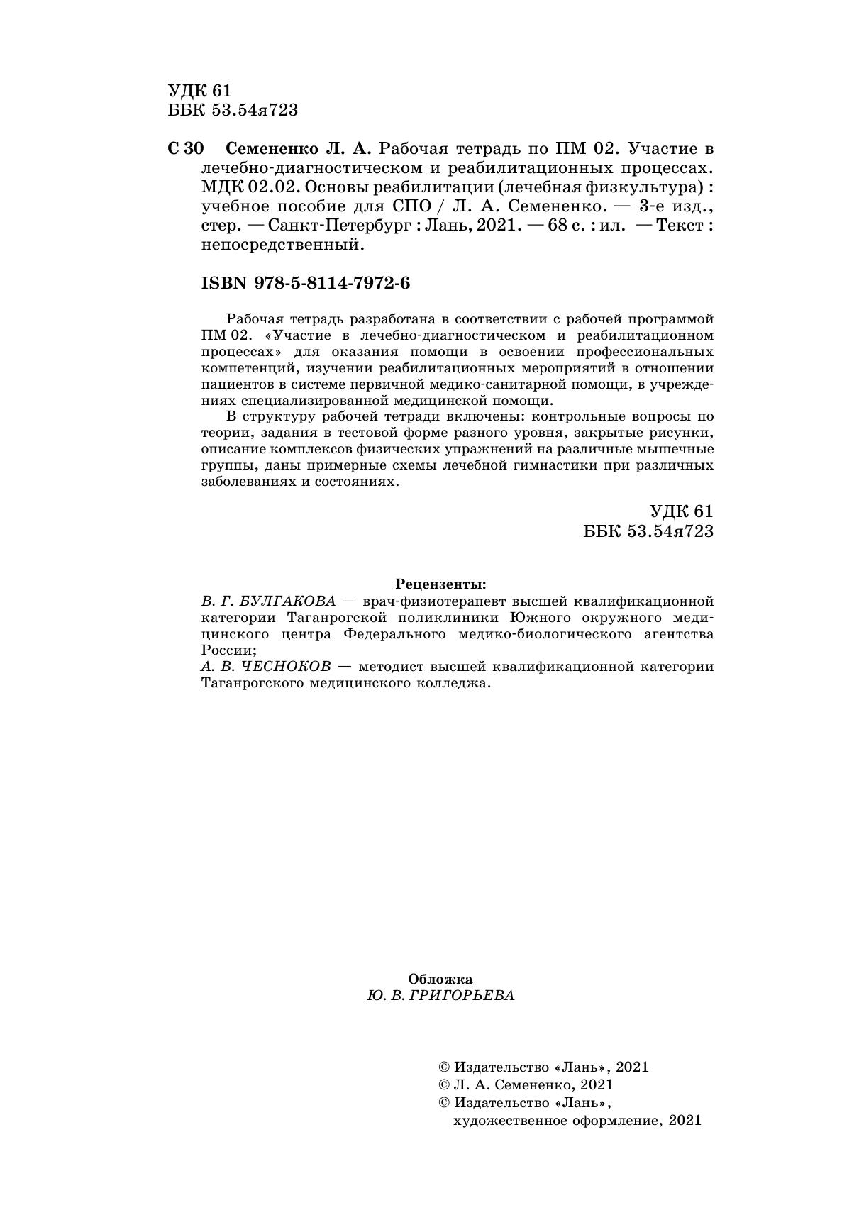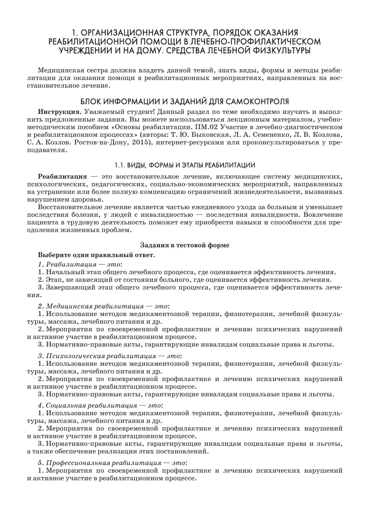 Рабочая тетрадь по ПМ 02. Участие в лечебно-диагностическом и реабилитационных процессах. МДК 02.02. Основы реабилитации (лечебная физкультура)
