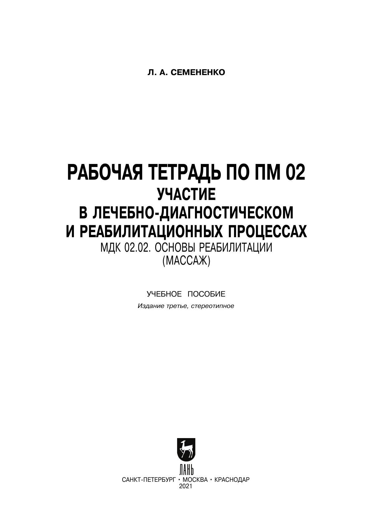 Рабочая тетрадь по ПМ 02. Участие в лечебно-диагностическом и реабилитационных процессах. МДК 02.02. Основы реабилитации (массаж)