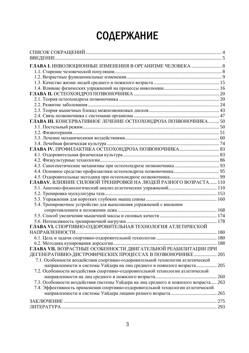 В монографии рассмотрены механизмы развития дегенеративно-дистрофических процессов в позвоночнике вследствие инволюционных изменений в организме человека. Представлены методы консервативного лечения ивторичной профилактики при данной патологии. Проанализированы результаты использования спортивно-оздоровительной технологии атлетической направленности с целью двигательной реабилитации при дегенеративно-дистрофических процессах в позвоночнике. Изучены изменения состояния опорно-двигательного аппарата и критериев качества жизни в результате применения названной технологии лицами среднего и пожилого возраста.Книга содержит теоретический и практический материал, предназначенный для студентов, обучающихся по специальности «Лечебная физкультура и спортивная медицина», «Физическая культура для лиц с отклонениями всостоянии здоровья (адаптивная физическая культура)», «Физическая культура», «Геронтология и гериатрия», а также для аспирантов, докторантов, слушателей отделения последипломной подготовки, профессиональных тренеров, научных сотрудников, преподавателей и других специалистов, решающих вопросы двигательной реабилитации лиц разного возраста.