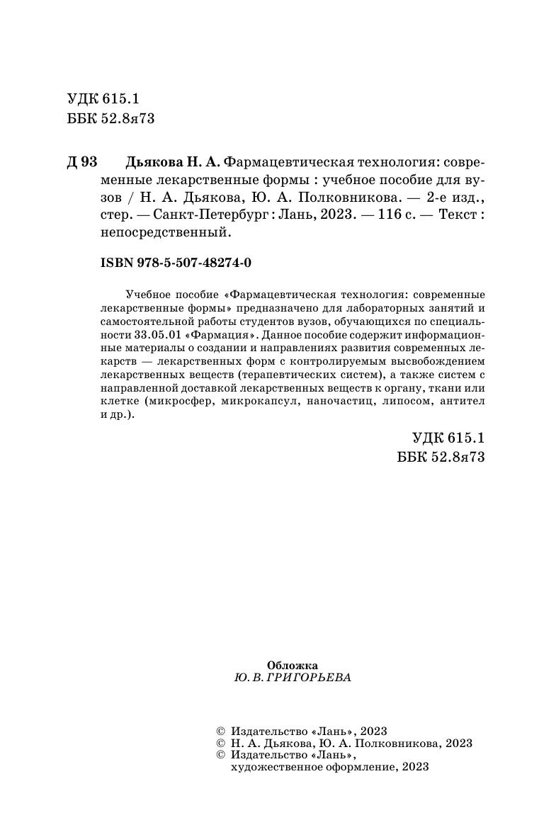 Учебное пособие «Фармацевтическая технология: современные лекарственные формы» предназначено для лабораторных занятий и самостоятельной работы студентов, обучающихся по специальности 33.05.01 «Фармация». Данное пособие содержит информационные материалы о создании и направлениях развития современных лекарств — лекарственных форм с контролируемым высвобождением лекарственных веществ (терапевтических систем), а также систем с направленной доставкой лекарственных веществ к органу, ткани или клетке (микросфер, микрокапсул, наночастиц, липосом, антител и др.).