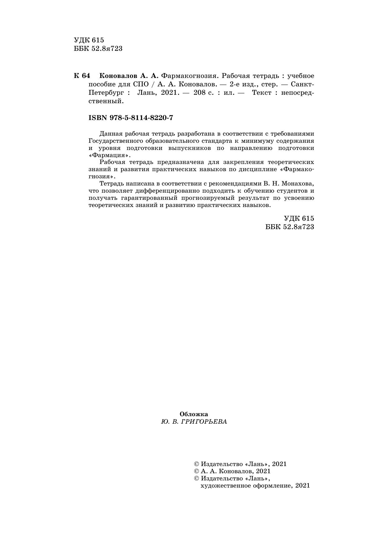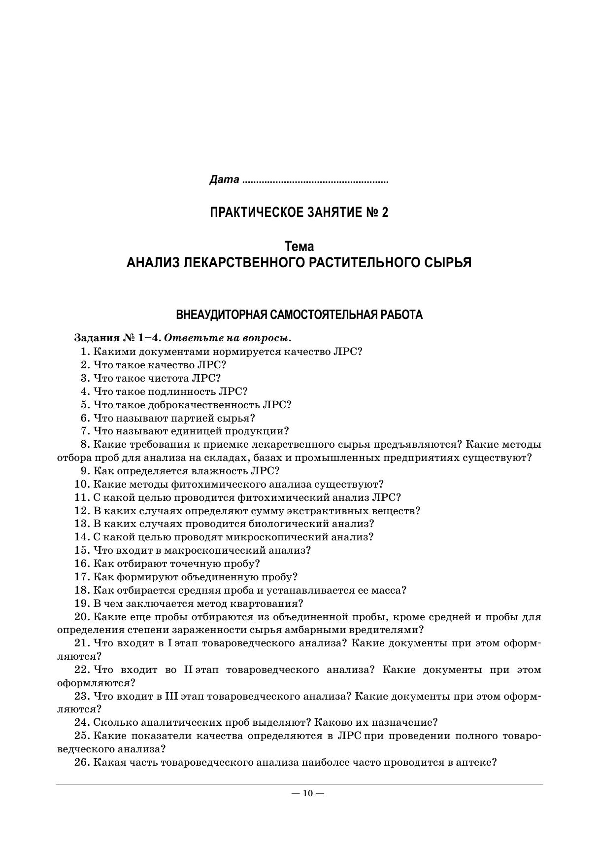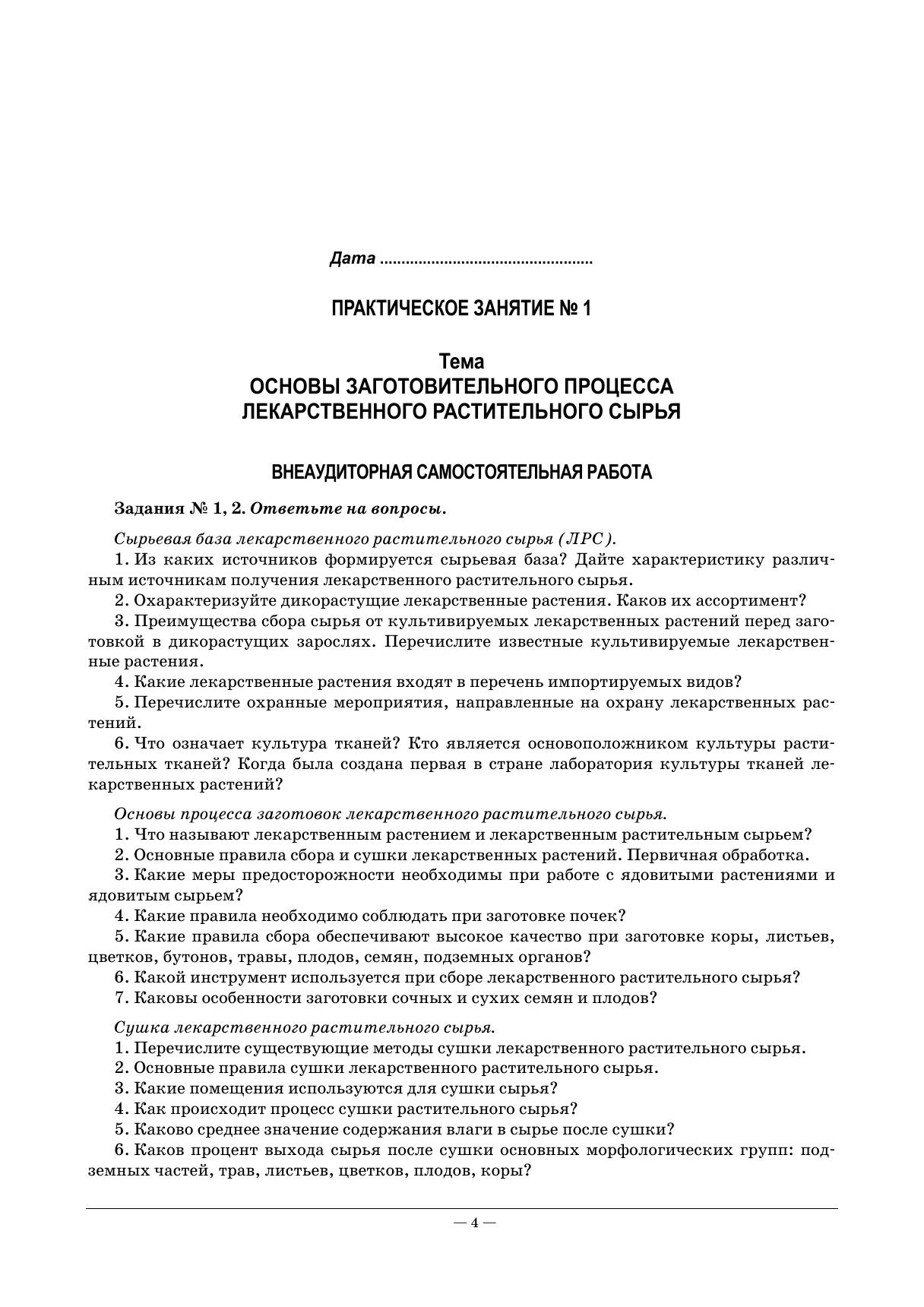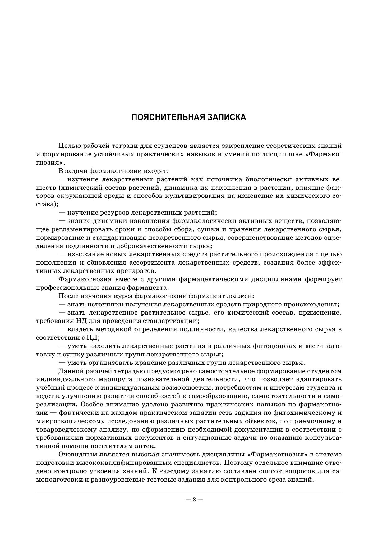 Рабочая тетрадь предназначена для закрепления теоретических знаний и развития практических навыков по дисциплине «Фармакогнозия».