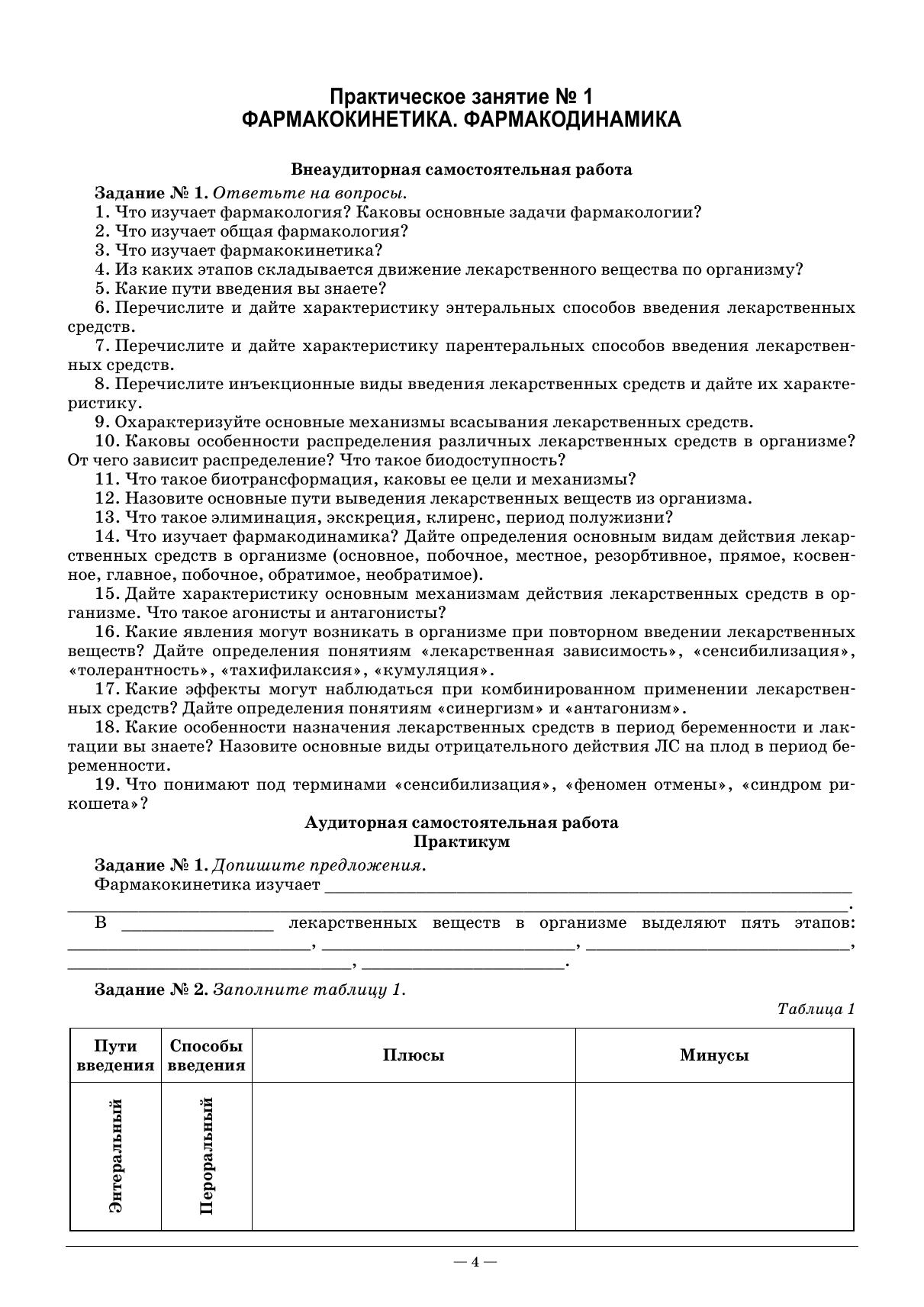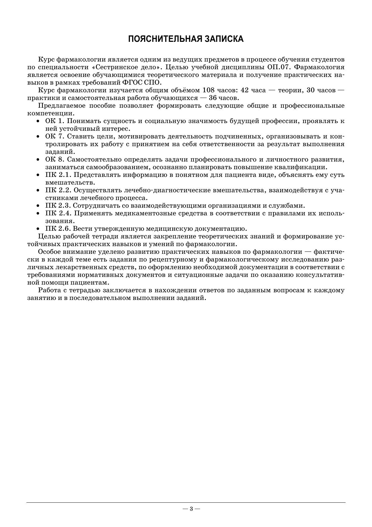 Рабочая тетрадь предназначена для закрепления теоретических знаний и развития практических навыков по дисциплине «Фармакология». Тетрадь позволяет дифференцированно подходить к обучению студентов и получать гарантированный прогнозируемый результат по усвоению теоретических знаний и развитию практических навыков.