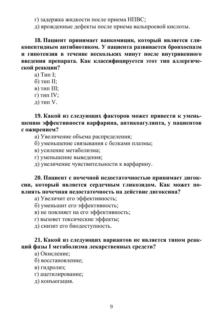 Пособие содержит тестовые задания, охватывающие основные группы лекарственных средств, такие как: противомикробные препараты, противовоспалительные средства, сердечно-сосудистые препараты, гормональные препараты и др. Каждый раздел посвящен конкретной группе лекарственных препаратов и содержит тестовые задания для определения механизмов действия, структуры и активности у лекарственных препаратов.