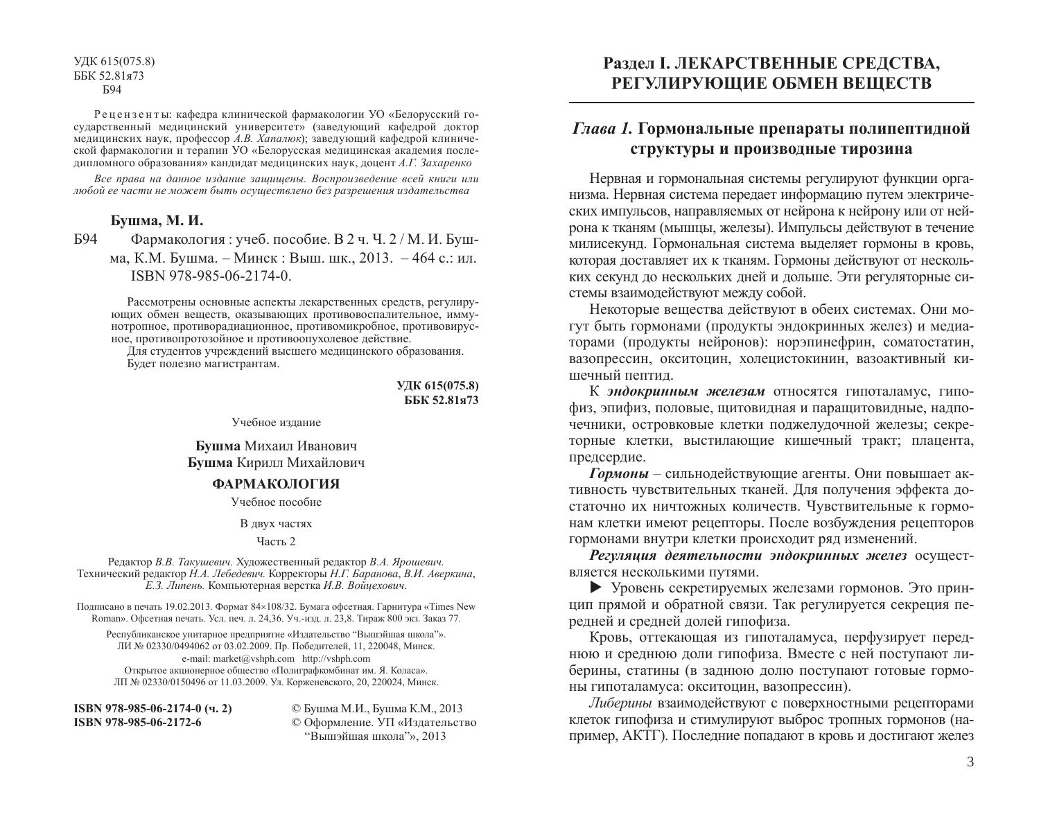 Рассмотрены основные аспекты лекарственных средств, регулирующих обмен веществ, оказывающих противовоспалительное, иммунотропное, противорадиационное, противомикробное, противовирусное, противопротозойное и противоопухолевое действие. Для студентов медицинских вузов. Будет полезно магистрантам.