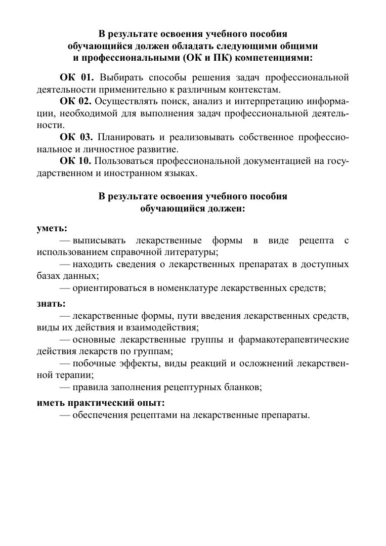 Учебное пособие содержит подробную характеристику традиционных и современных лекарственных форм, образцы их рецептурных прописей, а также формы рецептов на изделия медицинского назначения, очки и контактные линзы. Представлены описания основных понятий общей рецептуры, основ дозирования, основные требования к рецептурным сокращениям, также в пособии содержится большой набор учебных заданий для подготовки обучающихся. Соответствует современным требованиям Федерального государственного образовательного стандарта среднего профессионального образования и профессиональным квалификационным требованиям.