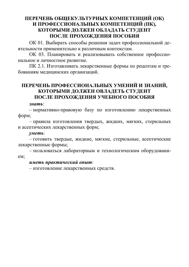 Пособие содержит подробное изложение теоретических основ изготовления и показателей качества лекарственных форм для офтальмологического применения, изготовленных в условиях аптечных организаций. Приведены теоретические основы с примерами расчетов, вопросы и задания для самоподготовки, даны ситуационные задачи и тестовые задания. Соответствует современным требованиям Федерального государственного образовательного стандарта среднего профессионального образования и профессиональным квалификационным требованиям.