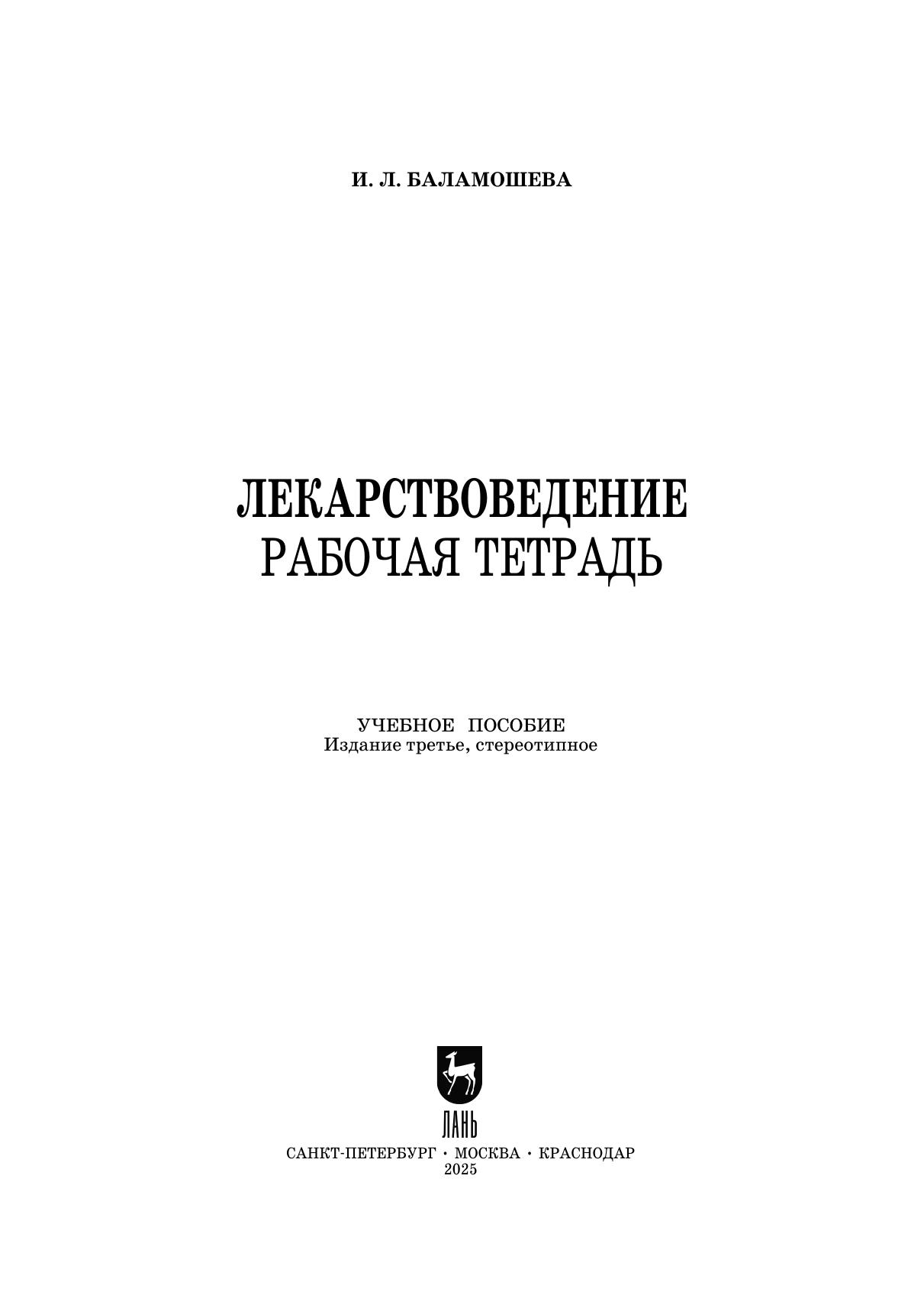 Лекарствоведение. Рабочая тетрадь