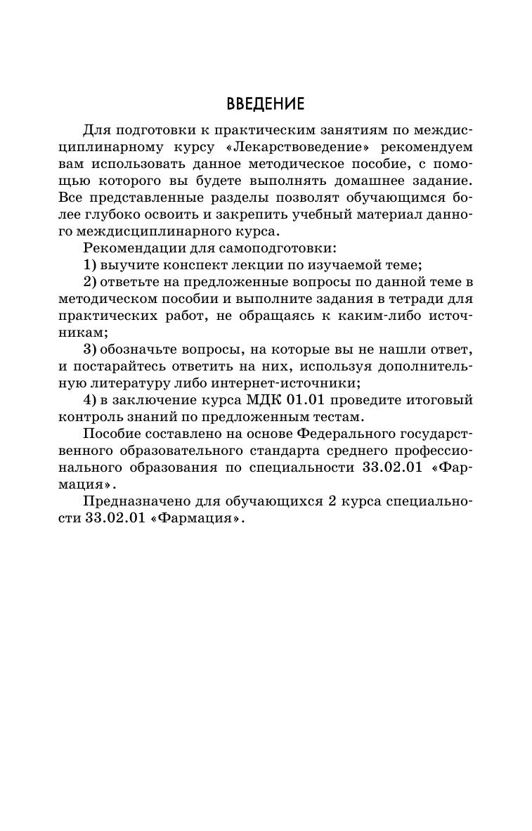 Сборник является составной частью учебно-методического комплекса профессионального модуля «Реализация лекарственных средств и товаров аптечного ассортимента» в рамках изучения междисциплинарного курса «Лекарствоведение». Данное методическое обеспечение контроля качества обучения обучающихся включает различные задания для самостоятельной работы. Предназначено обучающимся медицинских и фармацевтических колледжей и техникумов.