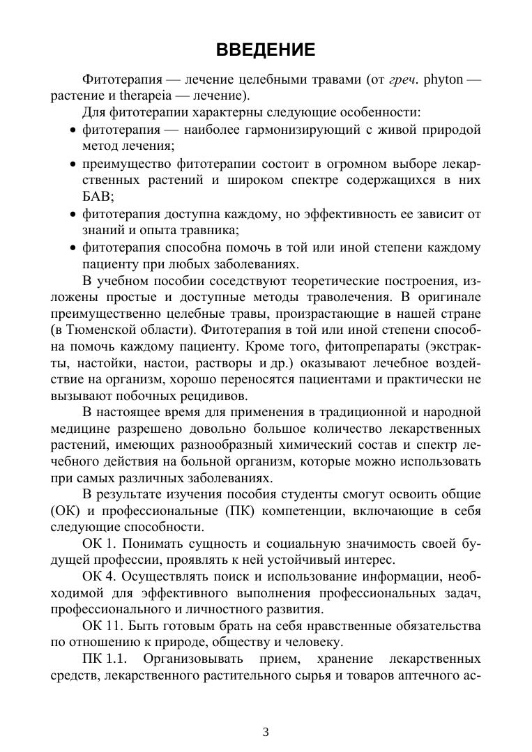 Учебное пособие включает ряд общих вопросов по лекарствоведению и фитотерапии, технологию сбора лекарственных целительных трав, способы изготовления настоев, экстрактов и других лекарственных форм, приведены рецепты в разных вариантах. Дана общая краткая характеристика лекарственных растений и их биологически активных веществ. Соответствует современным требованиям Федерального государственного образовательного стандарта среднего профессионального образования и профессиональным квалификационным требованиям.
