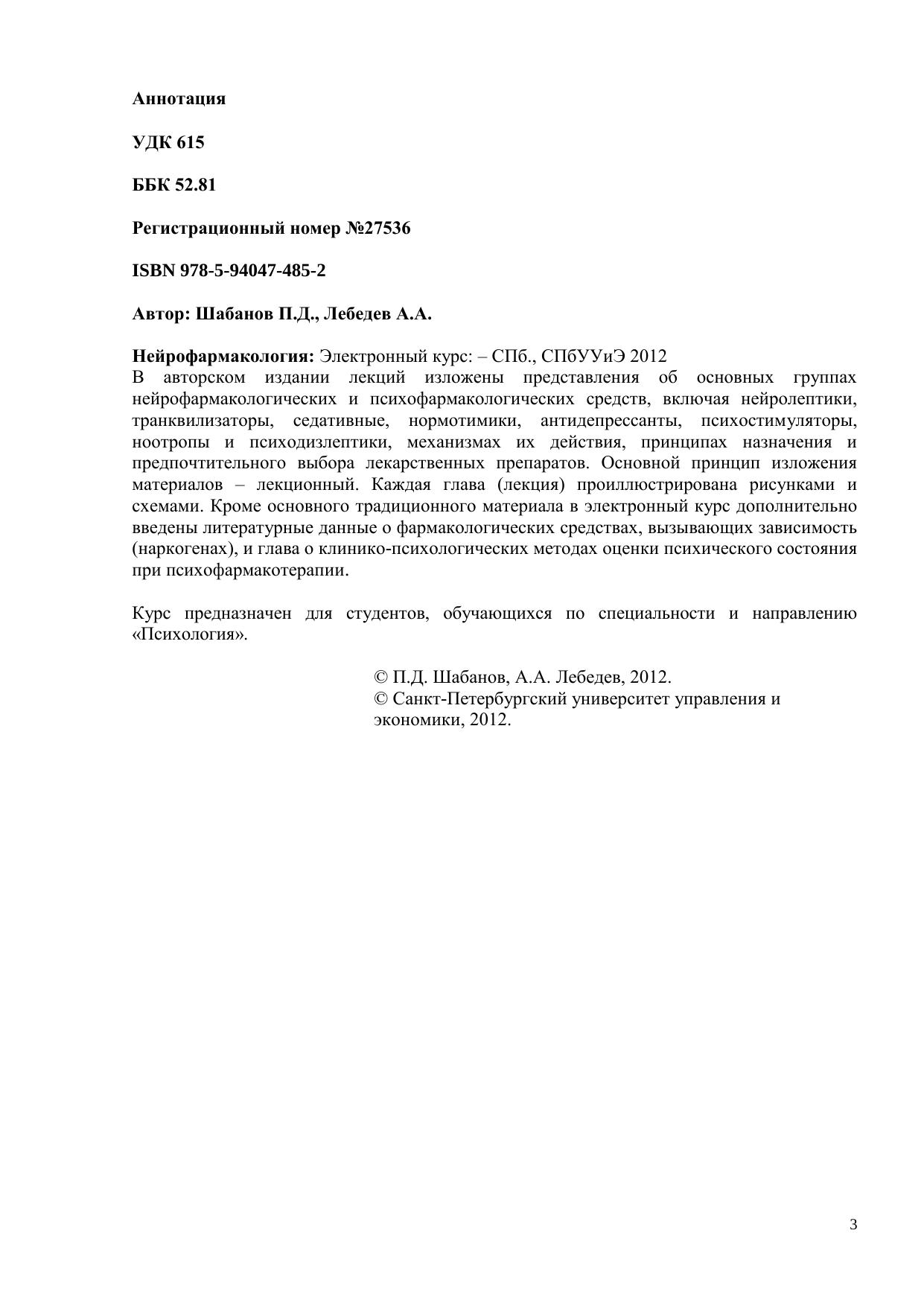 Авторы: Шабанов П.Д., Лебедев А.А.